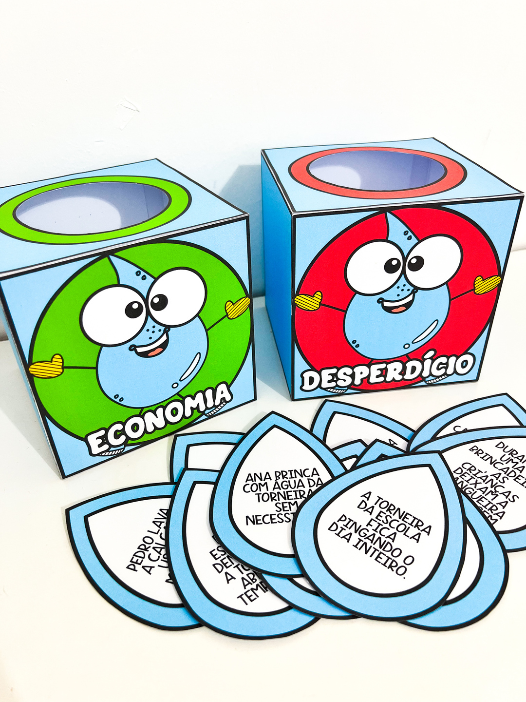 Recurso pedagógico ideal para trabalhar o Dia da Água de forma interativa e reflexiva com as crianças. A proposta consiste em identificar atitudes de economia e desperdício de água, ajudando os alunos a compreenderem a importância do uso consciente desse recurso tão essencial. O material contém: - 20 fichas de atitudes para análise e classificação - 2 caixas: uma para economia de água e outra para desperdício de água As crianças observam as situações apresentadas nas fichas e colocam na caixa correspondente, tornando a aprendizagem lúdica e significativa. Arquivo em PDF com 10 páginas, pronto para impressão.