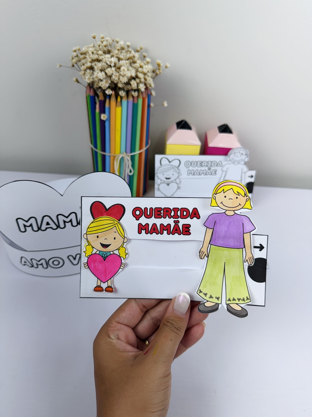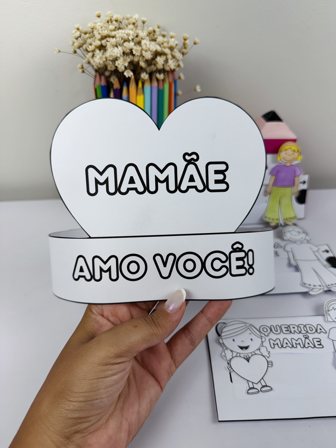 Um material lindo, afetivo e super especial para trabalhar o Dia das Mães com as crianças! ✨ O arquivo inclui: 👦👧 Opção menino e menina 💌 Cartão interativo “Querida Mamãe” 👑 Coroa temática para completar a atividade 🖍️ Versão para colorir (estimula criatividade e coordenação) 💖 Ideal para: ✔️ Educação Infantil ✔️ Lembrancinha afetiva ✔️ Trabalhar vínculo e expressão de sentimentos 📄 Material pronto para imprimir e montar 🎨 Fácil de usar e encantar as famílias
