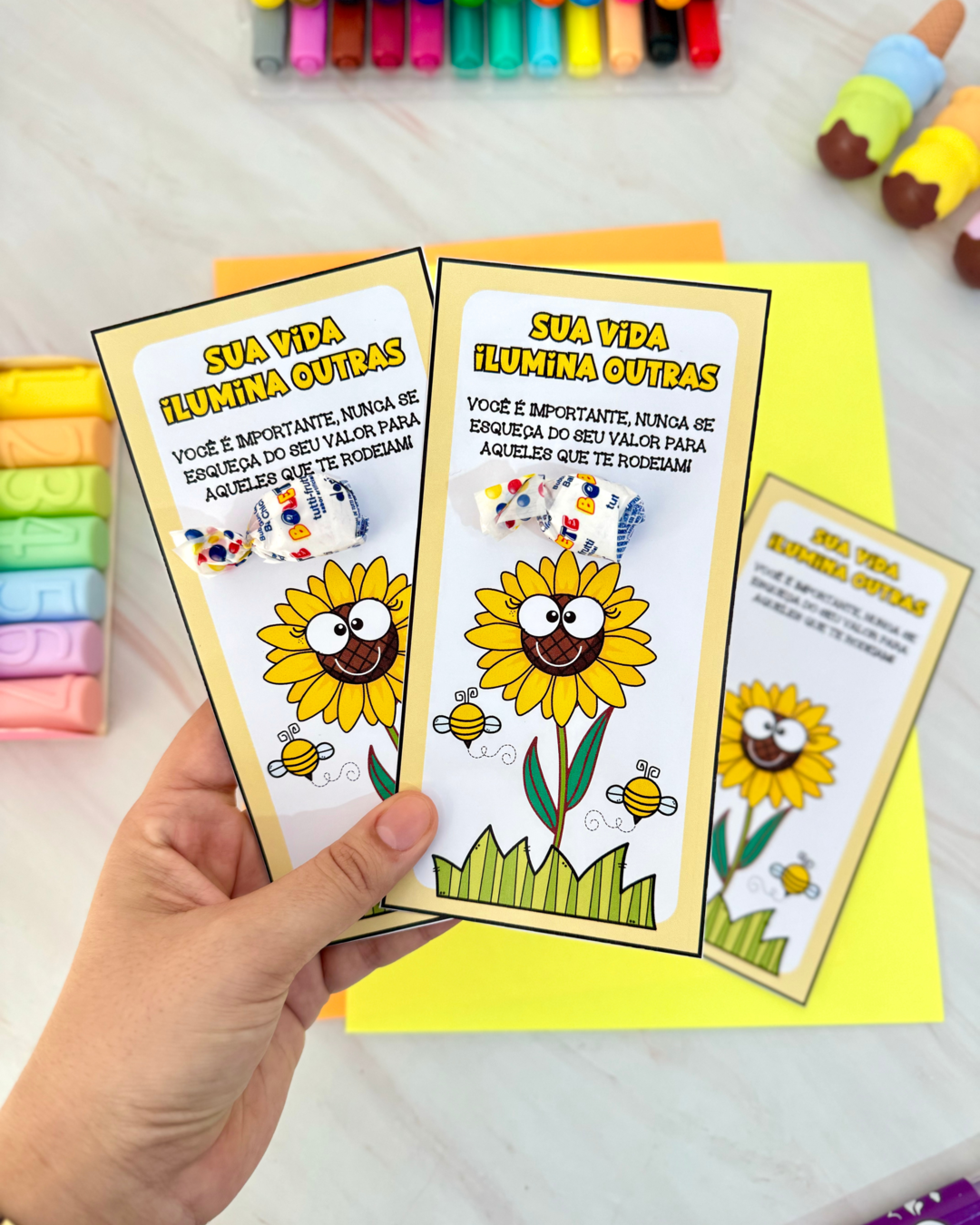 Cartão Setembro Amarelo - SUA VIDA ILUMINA OUTRAS VOCÊ É IMPORTANTE, NUNCA SE ESQUEÇA DO SEU VALOR PARA AQUELES QUE TE RODEIAM! Mostre que a vida de outras pessoas é muito importante para você! Cartão permite colocar bala ou bis.