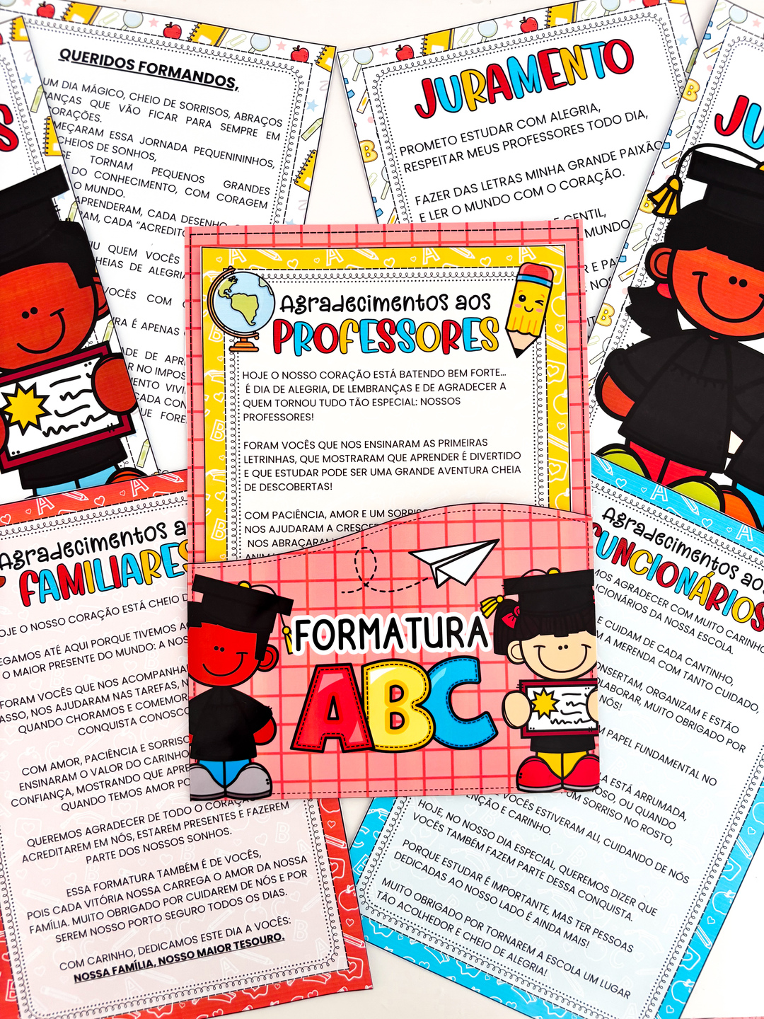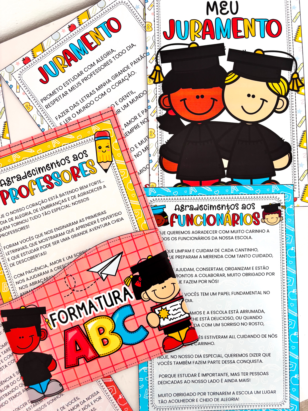🎓✨ A formatura do ABC é um momento cheio de significado e o Kit Cerimonial do ABC foi criado especialmente para ajudar você, professor da Educação Infantil, a transformar essa ocasião em uma lembrança inesquecível. 💛 Cada detalhe foi pensado com carinho para facilitar sua organização e trazer emoção à cerimônia. O material inclui o juramento dos formandos, uma mensagem especial para os pequenos, agradecimentos às famílias e aos professores, além de uma pasta organizadora com design moderno e encantador, que deixa tudo lindo e harmonioso para o grande dia. Tudo vai em PDF pronto para impressão, com tutorial de montagem passo a passo, pra você montar com facilidade e garantir um resultado incrível. ✨ Um material completo, prático e cheio de afeto, perfeito para tornar a formatura dos seus pequenos ainda mais mágica e inesquecível! 🎓💫