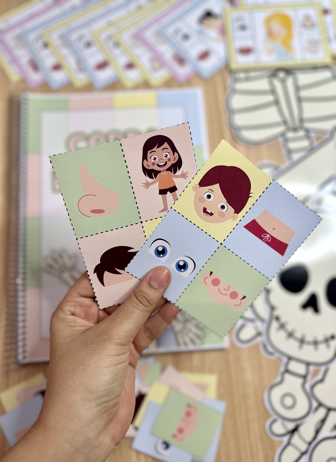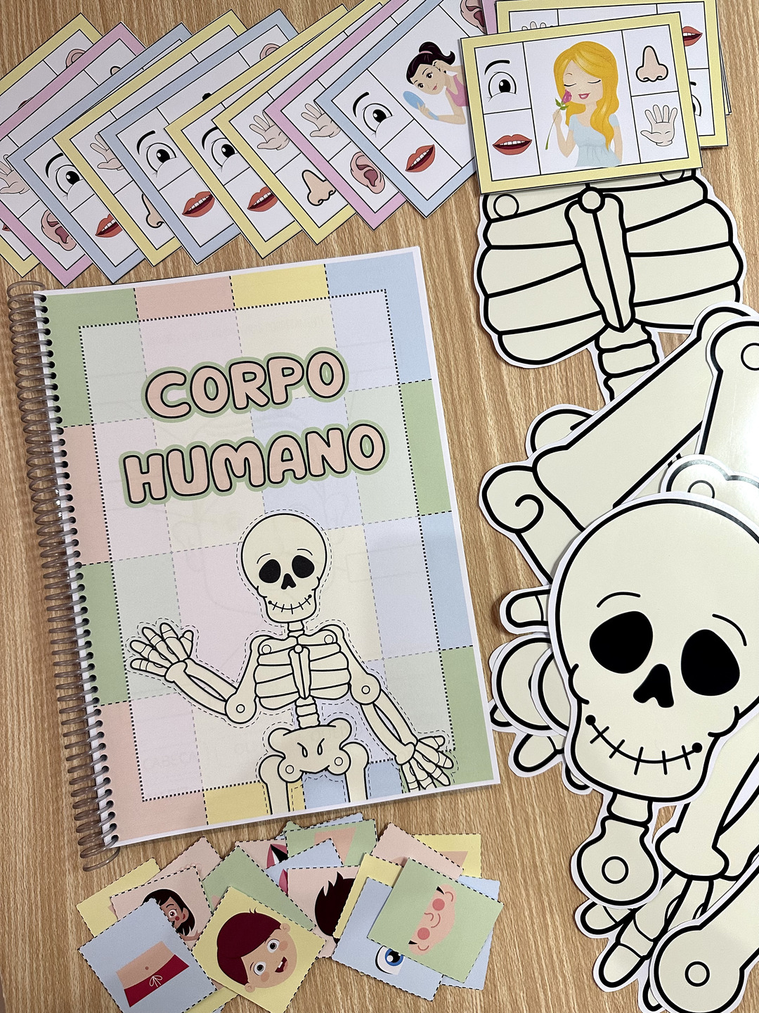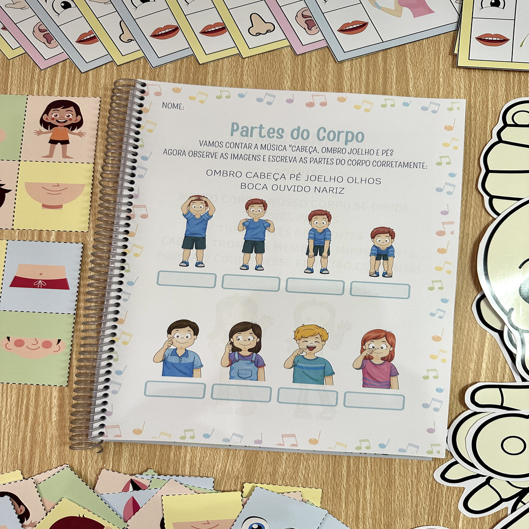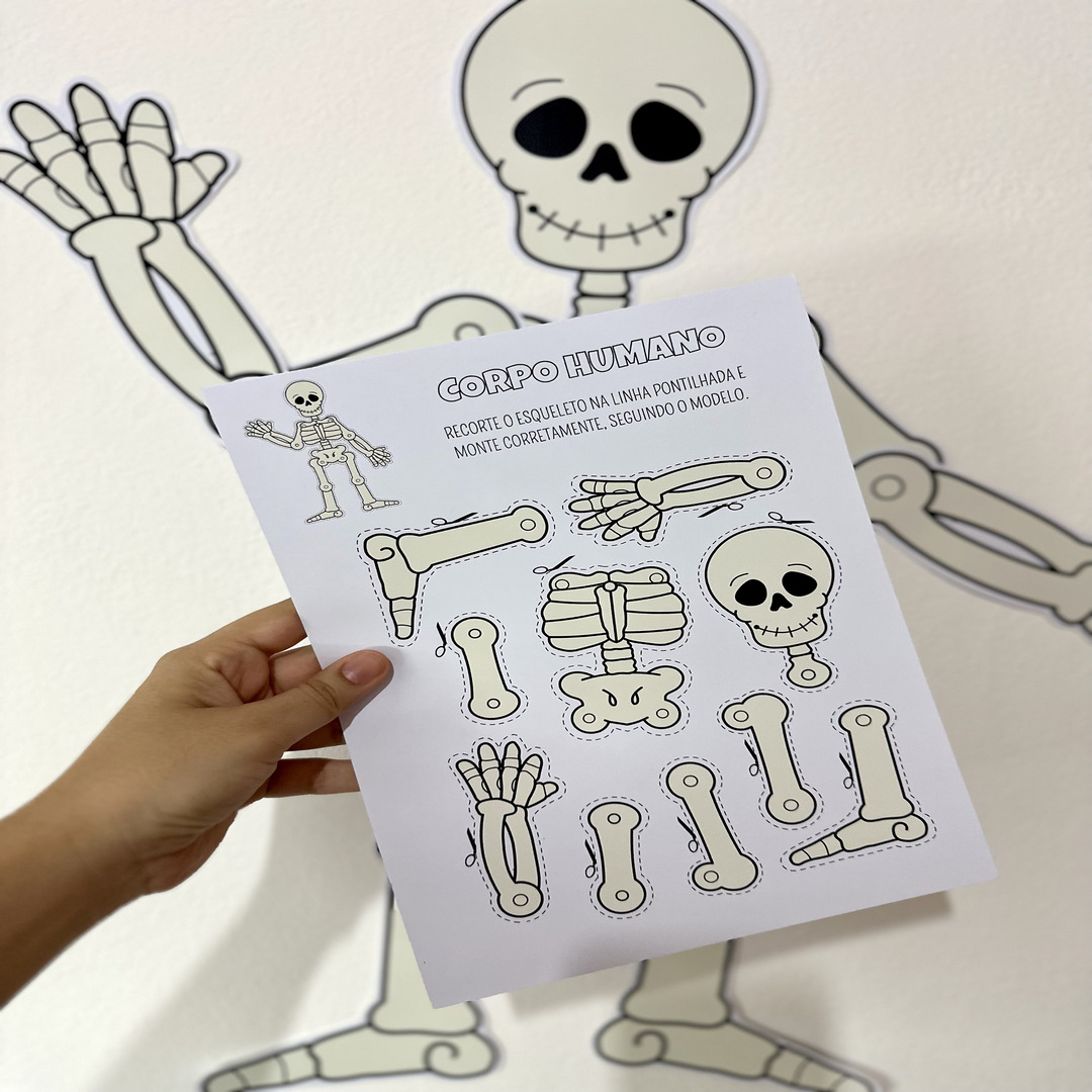 O Kit inclui jogo da memória das partes do corpo, esqueleto para montar em dois tamanhos e apostila de atividades. O arquivo Corpo Humano possui atividades e recursos para trabalhar o tema com crianças de 4 a 6 anos, de forma atrativa e prazerosa. Arquivo em PDF pronto para imprimir.