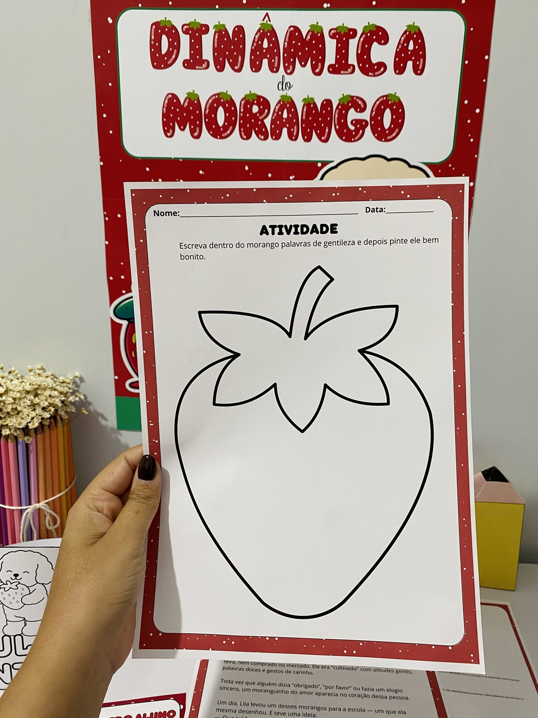 - Atividade com morango para escrever palavras gentis