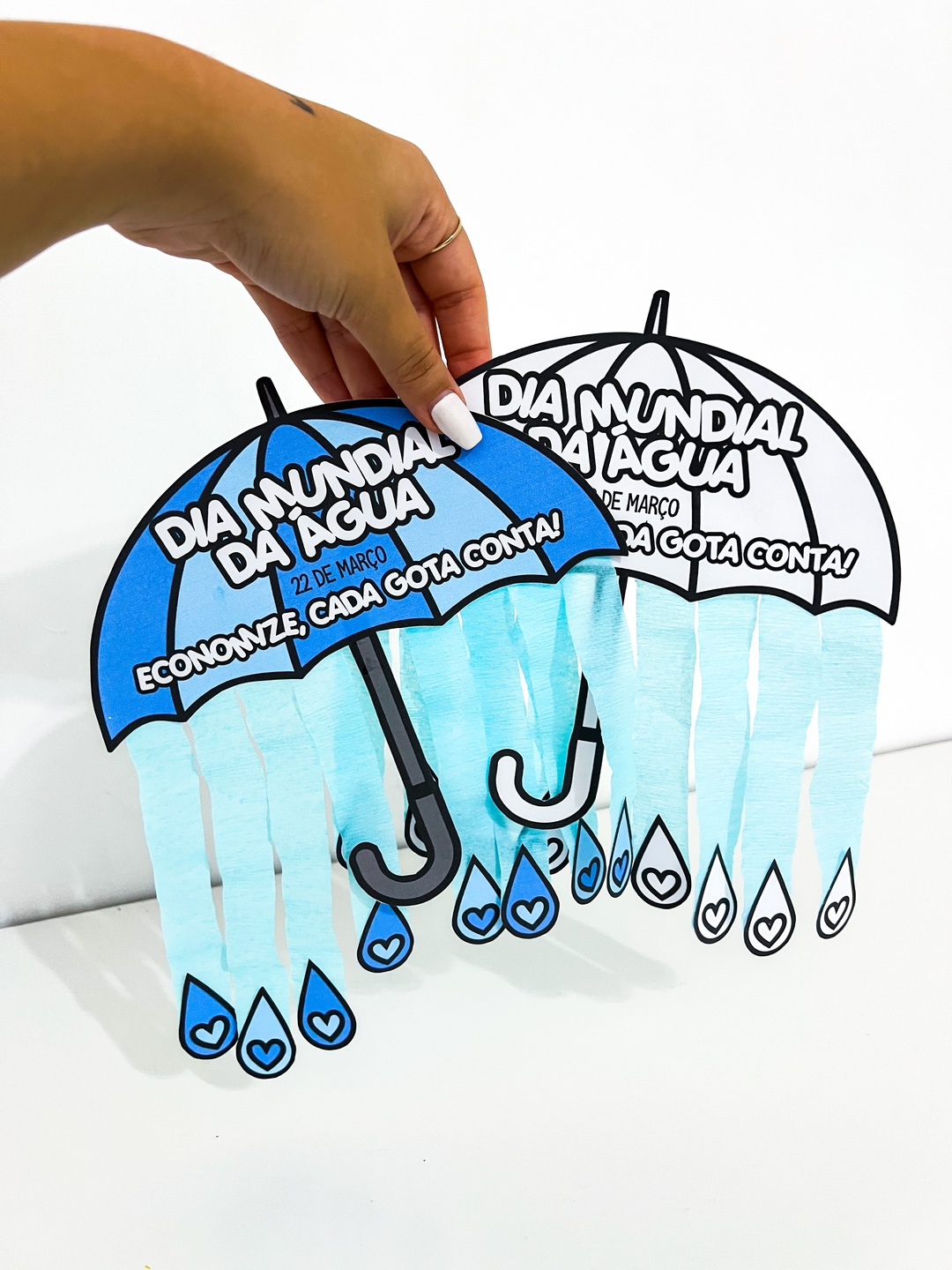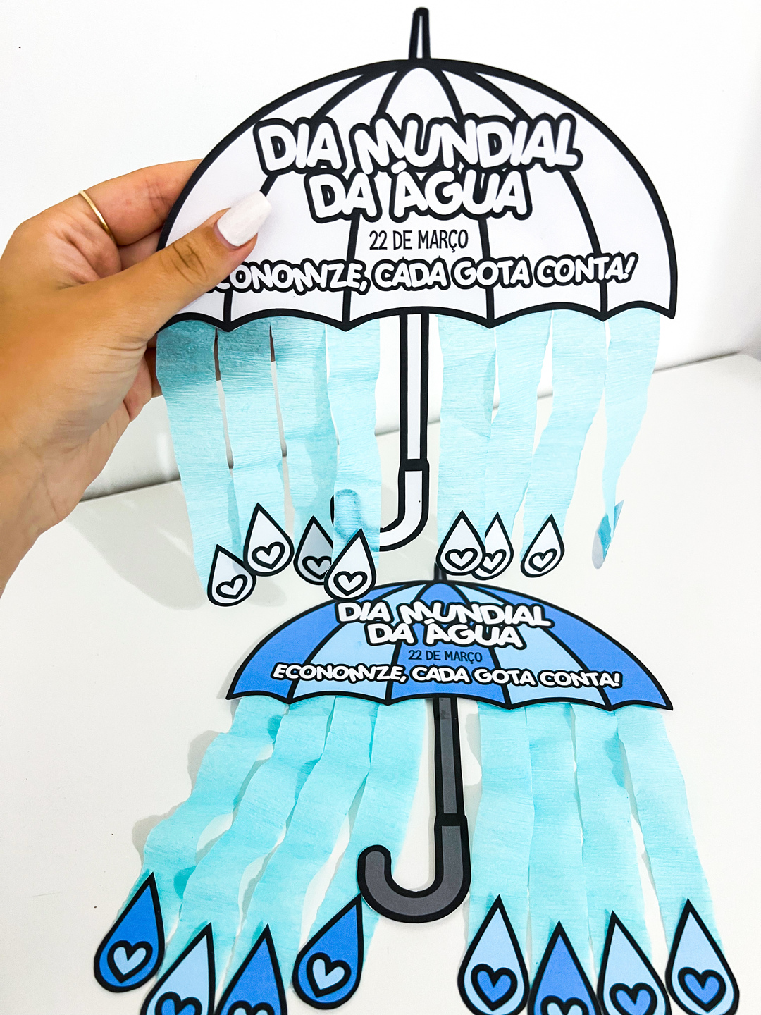Guarda-Chuvinha – Atividade Lúdica Dia da Água Uma proposta criativa e divertida para trabalhar o Dia Mundial da Água com as crianças. Nesta atividade, os alunos montam um guarda-chuvinha, explorando a criatividade e participando de forma ativa da comemoração da data. O material está disponível em duas versões: colorida e para colorir, permitindo que cada criança personalize seu trabalho. Para deixar a atividade ainda mais especial, é possível decorar com papel crepom para representar a chuva e utilizar palito de picolé para sustentar o guarda-chuva. Uma atividade lúdica e simples de montar. Arquivo em PDF com 2 páginas, pronto para impressão.