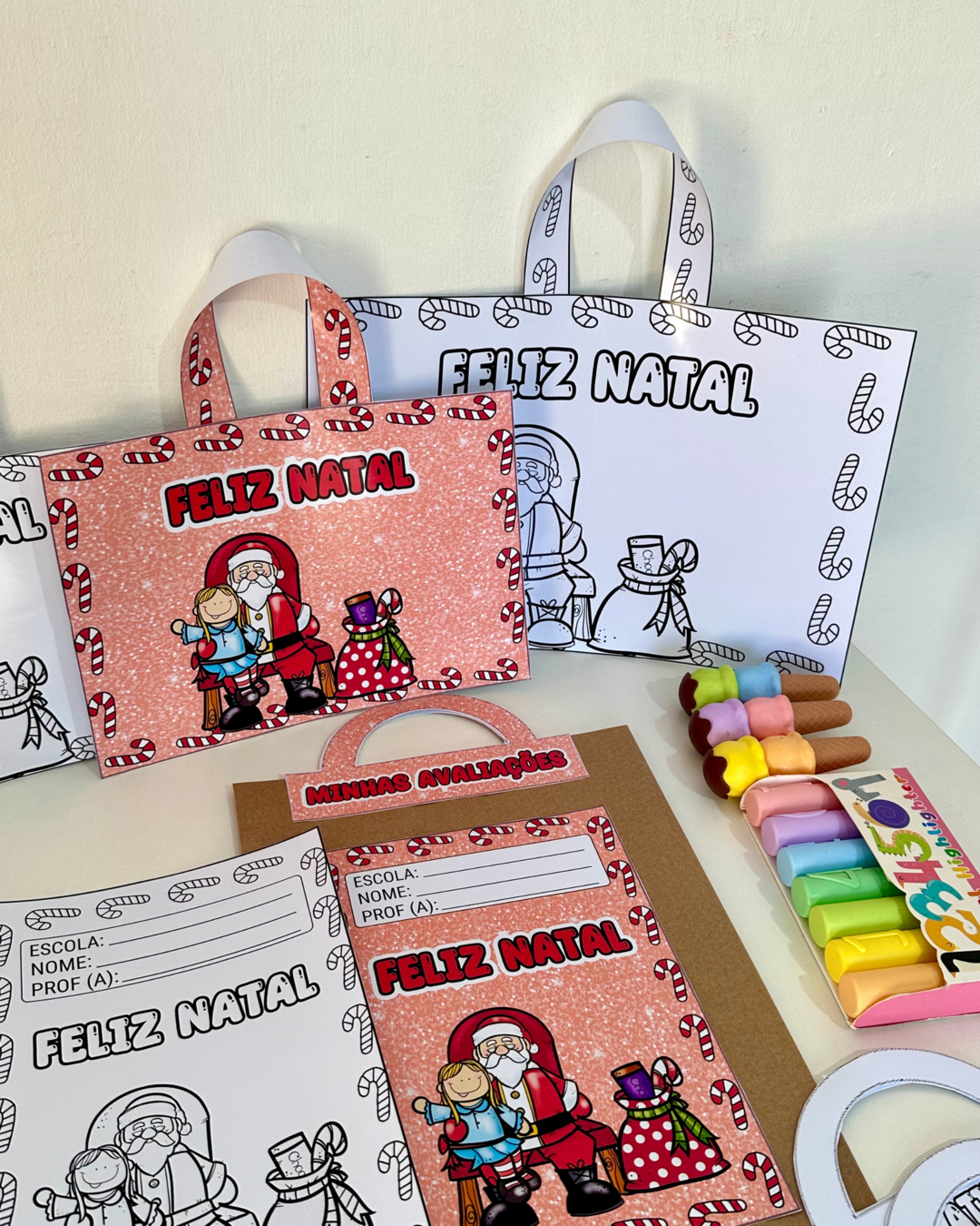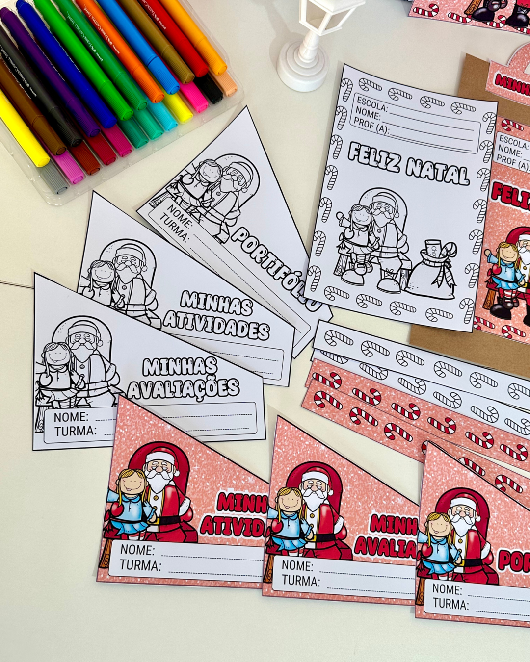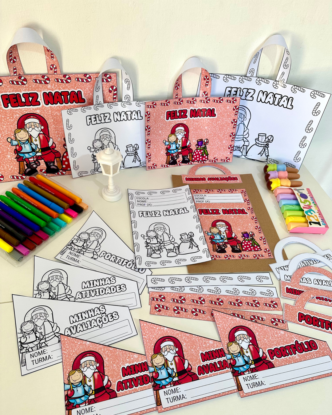 Kit Capas de Atividades tema Papai Noel. O kit inclui: - Capa colorida para envelope - Capa para colorir envelope - Alça para envelope colorida e colorir Atividades - Alça para envelope colorida e colorir Portfólio - Alça para envelope colorida e colorir Avaliações - Sacola colorida tamanho grande - Sacola colorida tamanho pequeno - Sacola para colorir tamanho grande - Sacola para colorir tamanho pequeno - Aba para envelope colorida e colorir Atividades - Aba para envelope colorida e colorir Portfólio - Aba para envelope colorida e colorir Avaliações O arquivo vai em PDF pronto para impressão.