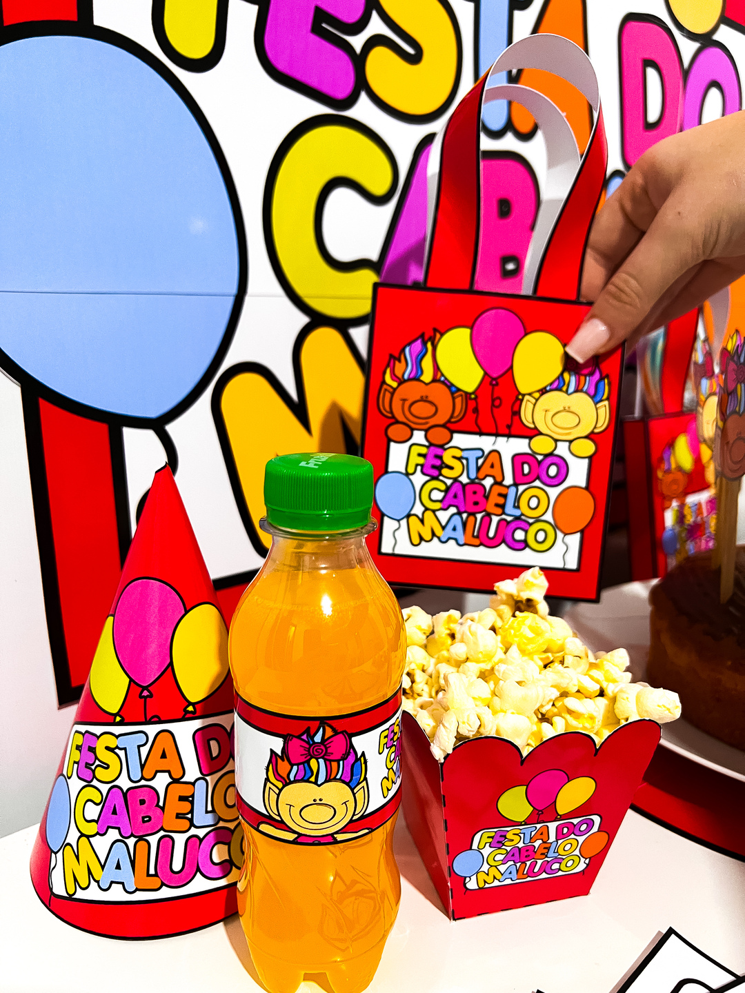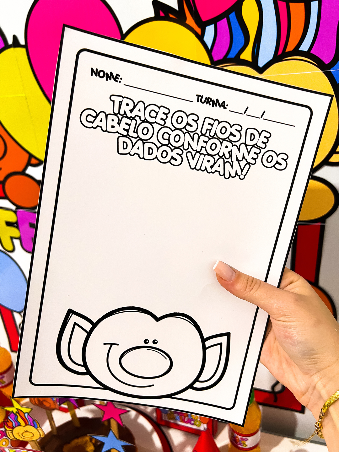 Kit Festa do Cabelo Maluco Um kit super colorido e divertido, perfeito para animar o dia do cabelo maluco na sua escola e também trabalhar de forma lúdica na educação infantil. O tema traz personagens alegres com cabelos malucos e cheios de cores, ideal para despertar a criatividade das crianças. O material contém: - Molde para caixinha de pipoca – deixa os lanchinhos muito mais charmosos. - Rótulo para garrafinha PET 200 ml – personaliza as bebidas com o tema da festa. - Chapéu de festa – colorido e divertido para as crianças entrarem no clima. - Forminha para brigadeiro – para deixar a mesa de doces ainda mais encantadora. - Sacolinha para doces – perfeita para lembrancinhas. - Enfeites para bolo – dão destaque especial na mesa principal. - Painel de 12 folhas – para decorar o ambiente de forma alegre e vibrante. - Duas atividades para educação infantil – jogos de traçado e dados para trabalhar coordenação motora, atenção, recortes e criatividade das crianças de maneira divertida.