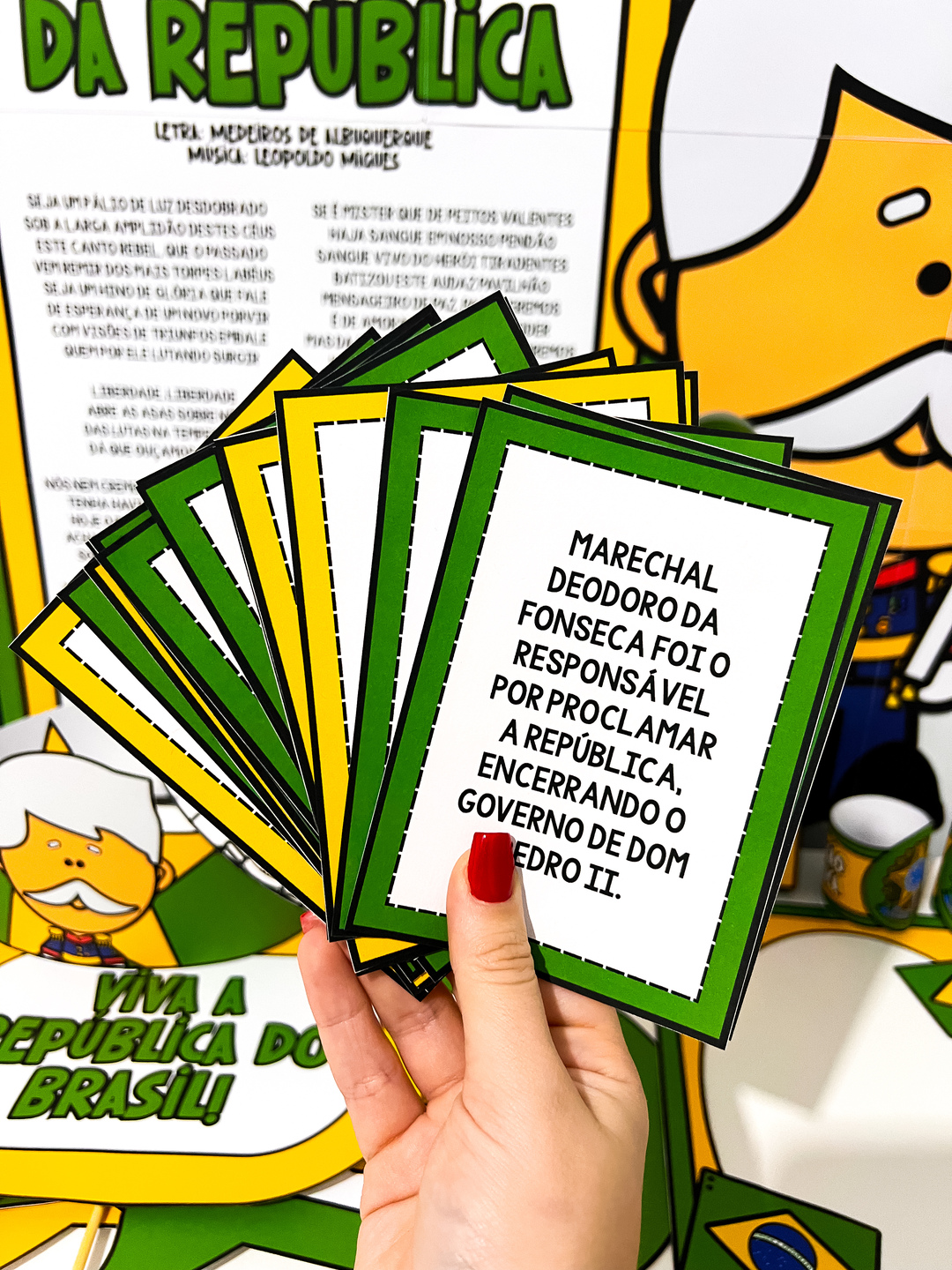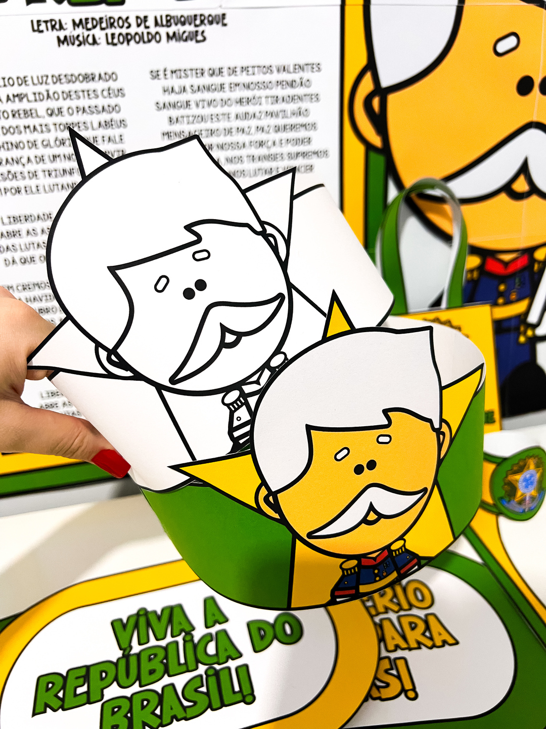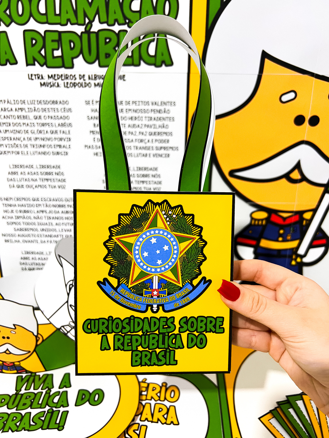 Com cores vibrantes e ilustrações atrativas, o kit une aprendizado histórico e diversão, sendo ideal para apresentações, murais, projetos e momentos comemorativos sobre a formação da República no Brasil.