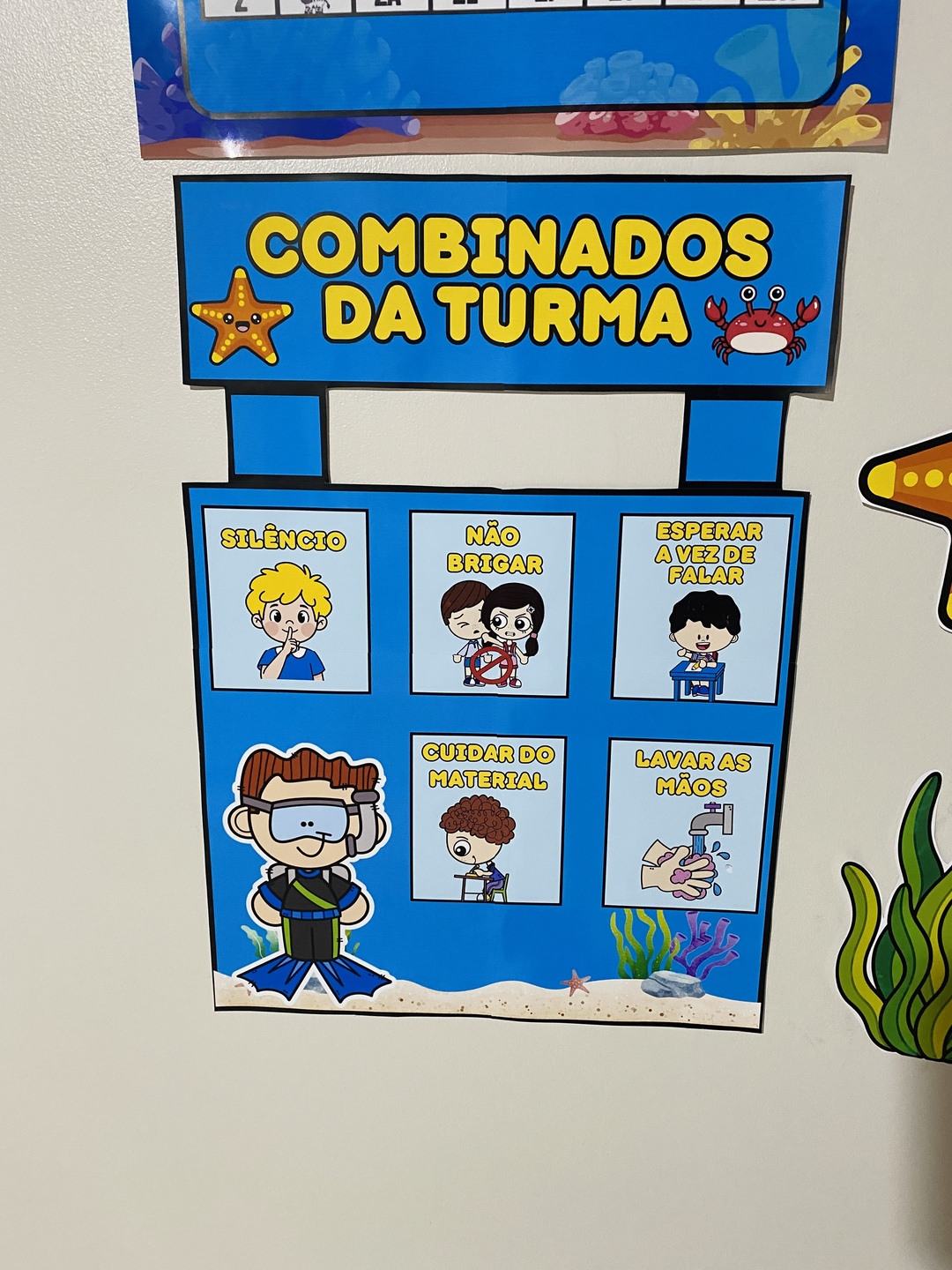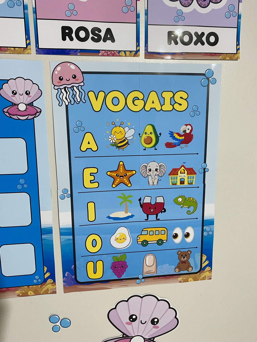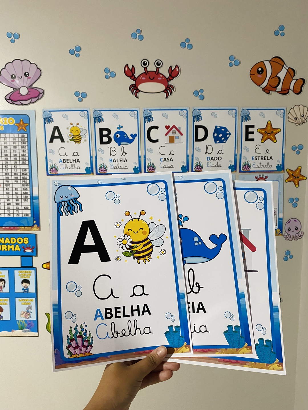 🐠 Kit Sala – Fundo do Mar Transforme sua sala em um verdadeiro mergulho encantador! O Kit Sala Fundo do Mar foi criado com muito carinho para deixar o ambiente ainda mais acolhedor, organizado e lúdico para as crianças. Um material completo, colorido e totalmente pronto para imprimir! ✨ O que acompanha o kit? 🐚 Alfabeto ilustrado completo no tema fundo do mar 🐬 Números de 1 a 10 com representação de quantidade 🐙 Silabário de sílabas simples 🦀 Silabário de sílabas complexas 🌊 Combinados da turma 📅 Calendário interativo ⭐ Alunos do mês 🎨 As vogais 🎨 As cores 🐟 Figuras decorativas no tema fundo do mar para enfeitar sua sala 🎁 Bônus exclusivo: 👑 Coroas em duas versões 🚪 Decoração de porta + plaquinha de bem-vindos