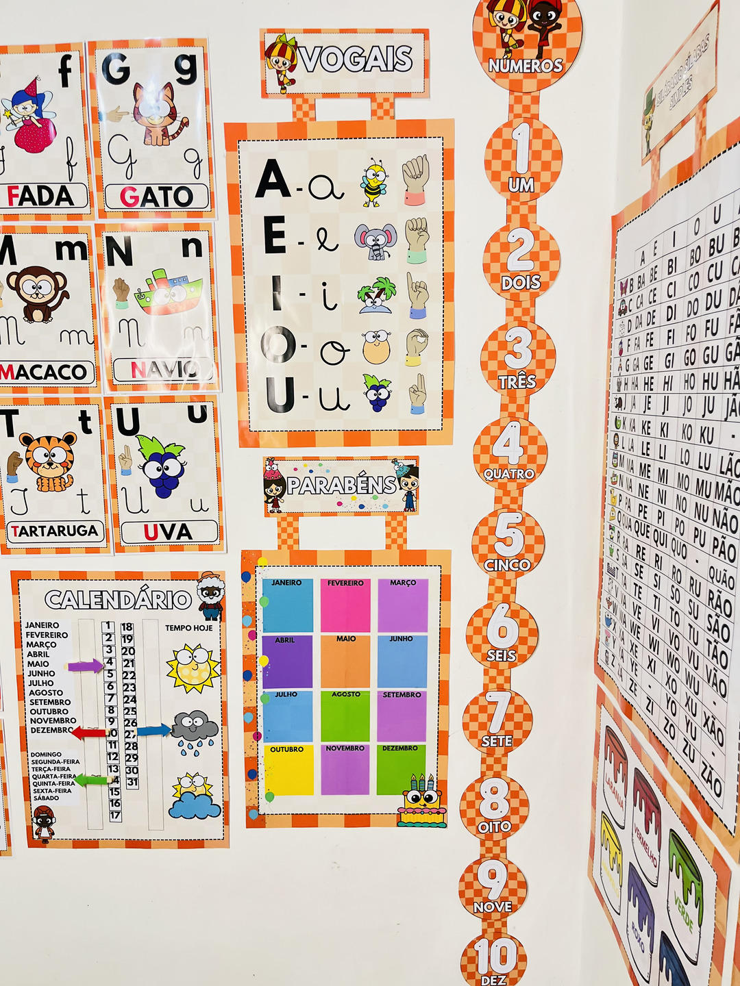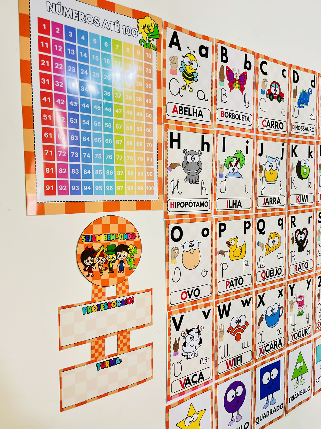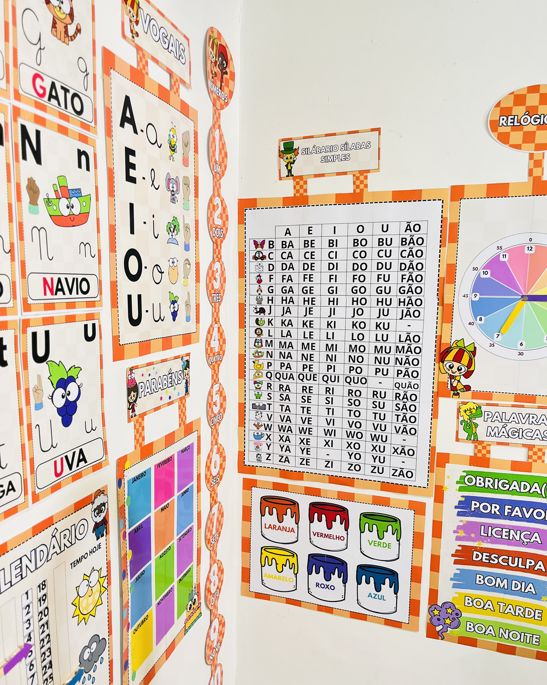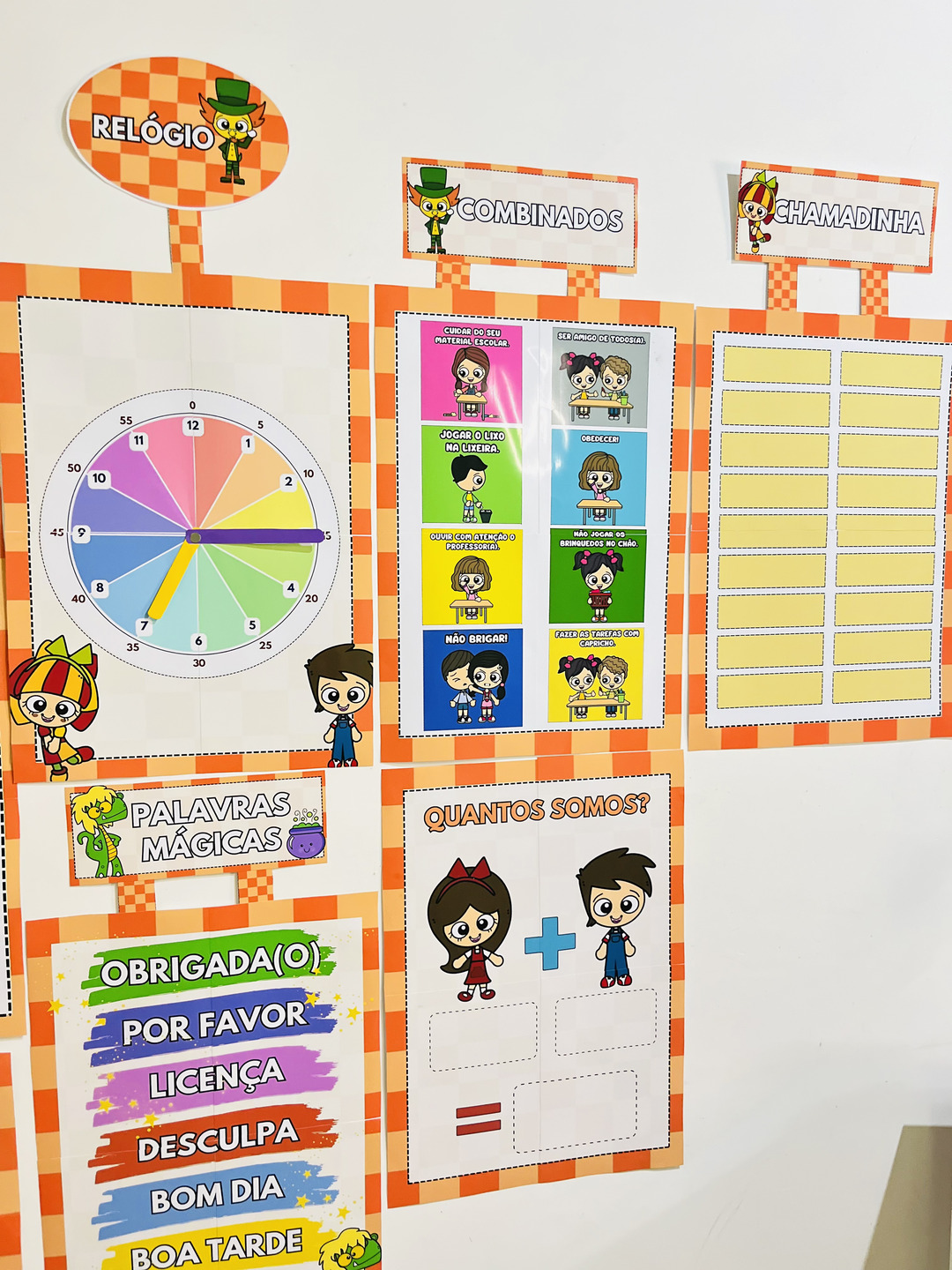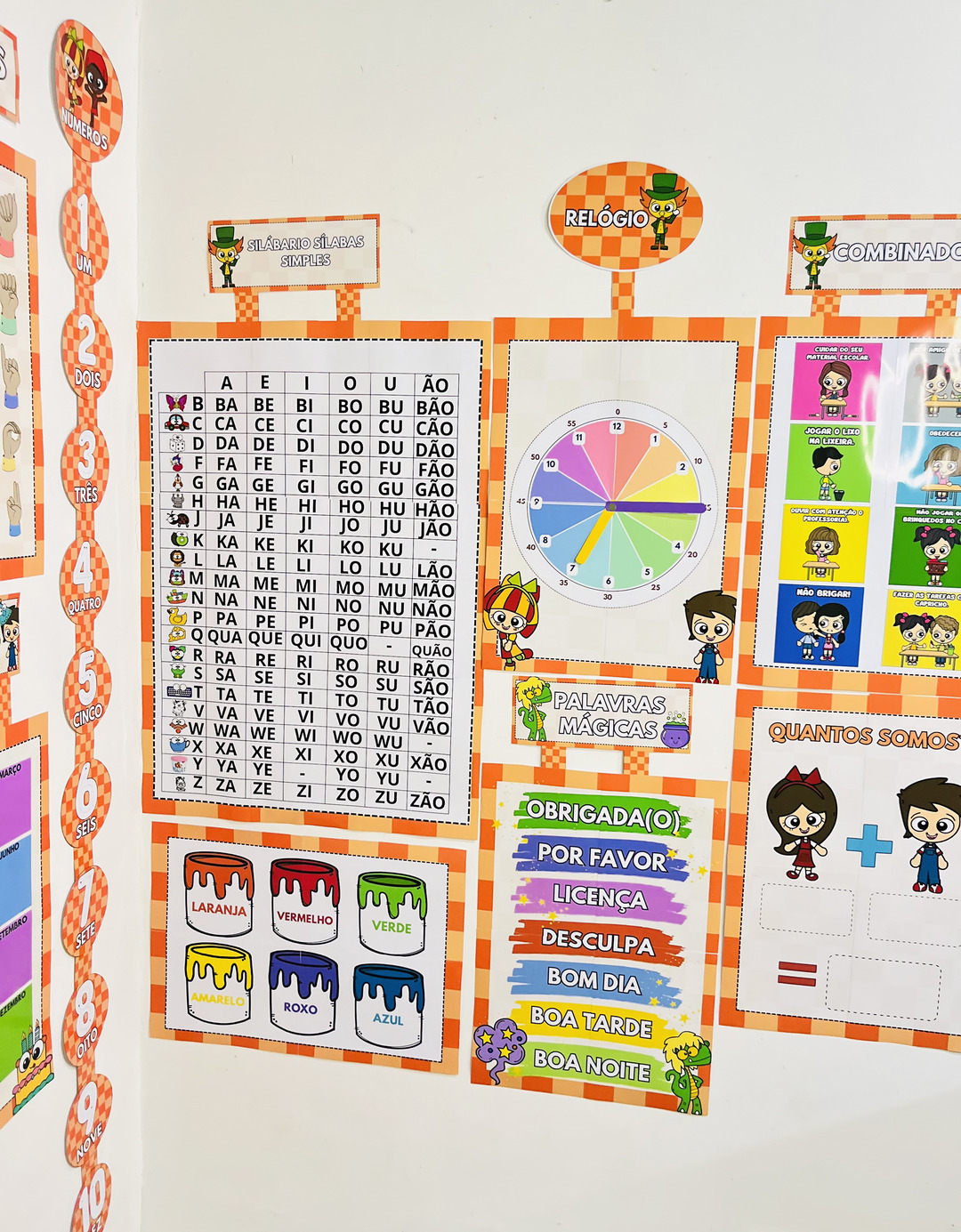 Kit Sala de Aula - Turma do Sítio do Pica-Pau Amarelo Crie uma sala de aula encantadora e funcional com o Kit Sala de Aula Turma do Sítio do Pica-Pau Amarelo! Inspirado no universo mágico dos personagens queridos, este kit é ideal para professores que desejam trazer organização e aprendizado lúdico para seus alunos. O que inclui: 📌 Chamadinha: Deixe o dia mais divertido com um painel personalizado para chamada dos alunos. 📌 Relógio de Parede: Com design temático, ajuda os pequenos a aprenderem sobre as horas de forma visual e criativa. 📌 Calendário: Planejamento e organização com um toque especial do Sítio. 📌 Silabário (Sílabas Simples): Estimule a alfabetização com materiais atraentes e pedagógicos. 📌 Formas, Cores e Números (1 a 10 e até 100): Recursos visuais para auxiliar no reconhecimento e aprendizado de conceitos básicos. 📌 Combinados: Reforce as regras da turma de forma lúdica e envolvente. 📌 Alfabeto Ilustrado com Símbolos de Libras: Inclusão e aprendizado lado a lado. 📌 Vogais Ilustradas com Símbolos de Libras: Perfeito para trabalhar fonemas e inclusão. 📌 Palavras Mágicas: Ensine boas maneiras com diversão. 📌 Aniversariantes: Celebre momentos especiais com um painel decorativo. 📌 Quantos Somos: Auxilia no aprendizado de contagem e promove interação na turma. 📌 Decoração para Porta: Torne a entrada da sala inesquecível com um toque do universo do Sítio. Brindes Exclusivos: 🎁 Crachá de Mesa com Alfabeto: Uma ferramenta prática para ajudar os pequenos a se orientarem durante as atividades. 🎁 Crachá “Estou Indo ao Banheiro” e “Estou Indo Beber Água”: Organização e controle para o dia a dia escolar. ✨ Por que escolher este kit? Completo e prático: Tudo o que você precisa para organizar sua sala de aula com qualidade. Temático e atrativo: Estimula o interesse e a participação dos alunos. Inclusivo: Inclui materiais em Libras, promovendo a acessibilidade. Transforme sua sala em um ambiente de aprendizado encantador e acolhedor com o Kit Turma do Sítio do Pica-Pau Amarelo! 🌟