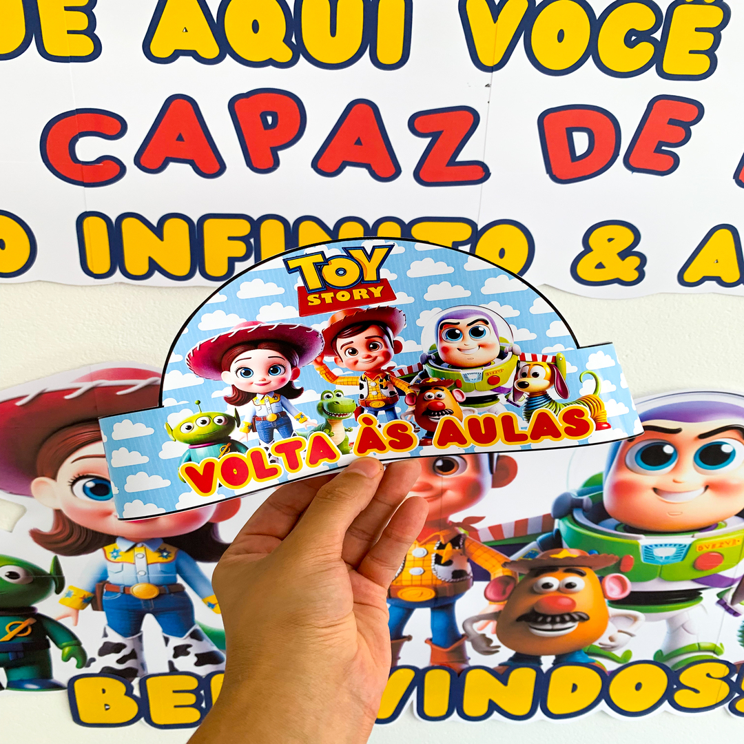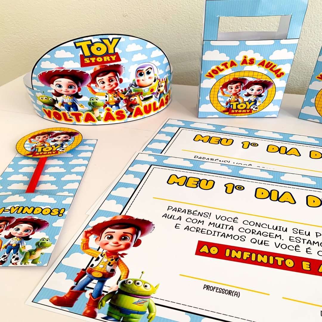 Kit Volta às Aulas - Tema Toy Story! Inclui: - Painel decorativo com a frase: “Que aqui você seja capaz de ir ao infinito e além." - Porta-lápis estilizado - Tags para lápis - Sacolinha personalizada - Coroa colorida para os alunos - Certificado especial de Primeiro Dia de Aula 🎉Tudo pensado para criar uma recepção calorosa e cheia de afeto! Professores, deixem sua sala de aula ainda mais encantadora. ✏️