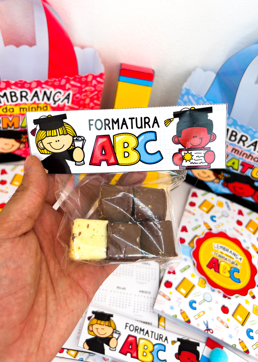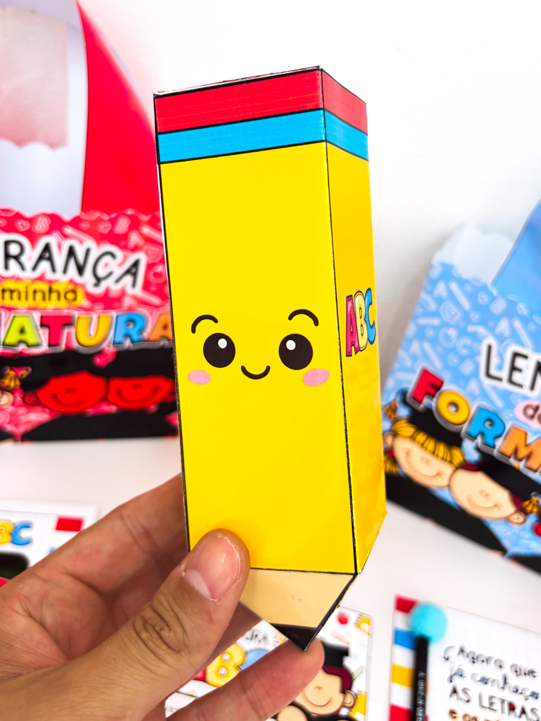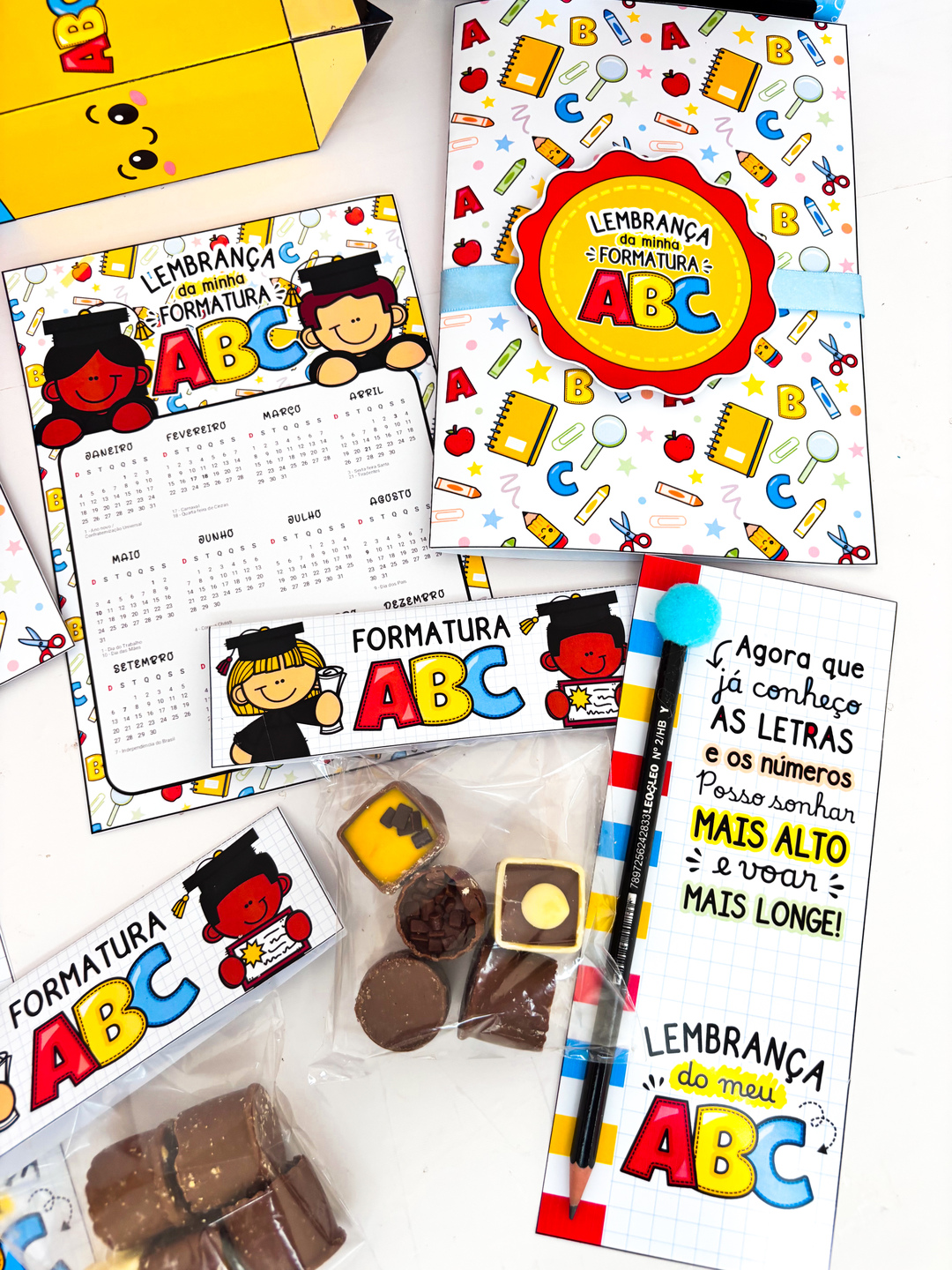A formatura do ABC é um momento único… e nada melhor do que surpreender seus pequenos formandos com uma lembrança cheia de amor e cuidado! 💛 Essa sacola personalizada, disponível em duas cores lindas, foi pensada para transformar a entrega dos mimos em um momento inesquecível. E o melhor: ela vem com tutorial de montagem passo a passo, pra você montar tudo com praticidade e deixar cada detalhe perfeito! Dentro dela, você encontra um verdadeiro kit de carinho: 📸 Cartão personalizável com a foto do formando e da turma — um registro pra guardar pra sempre; ✏️ Cartão lápis e caixa lápis para guloseimas — porque todo formando merece um doce toque de alegria; 🎁 Lapela para saquinho, pra deixar o presente ainda mais caprichado; 📅 E um Calendário 2026, pra começar o novo ciclo cheio de boas lembranças. Tudo pronto em PDF para impressão, com design encantador e pensado especialmente para professoras que amam surpreender suas turminhas com criatividade e afeto!