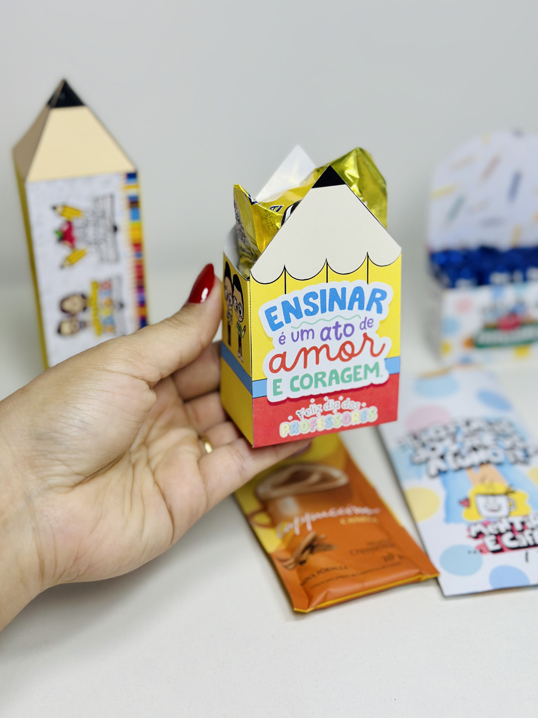 Lembrancinhas Dia dos Professores 4 lindos modelos de lembrancinhas para reforçar o carinho e admiração pelos professores - Caixinha lápis - Caixinha lápis pequena para bombom - Envelope para colocar sachê de café - Caixinha para colocar bombom, bis ou sabonete pequeno