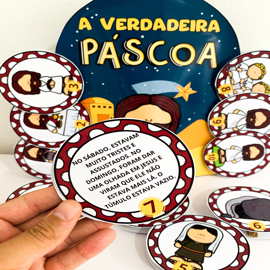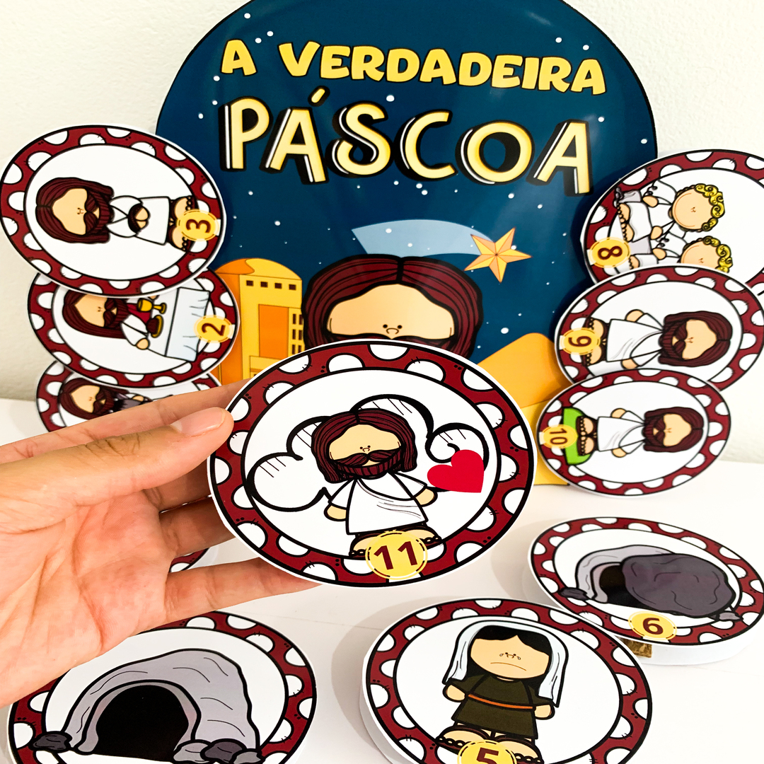 Descubra a história da Páscoa de um jeito mágico e especial! ✨ Com a nossa luva de história e fichas ilustradas, você vai embarcar em uma jornada emocionante para conhecer o verdadeiro significado da Páscoa: o amor e a esperança que Jesus nos trouxe. Uma forma lúdica e interativa de apresentar a história da paixão, morte e ressurreição de Jesus para crianças e adultos.