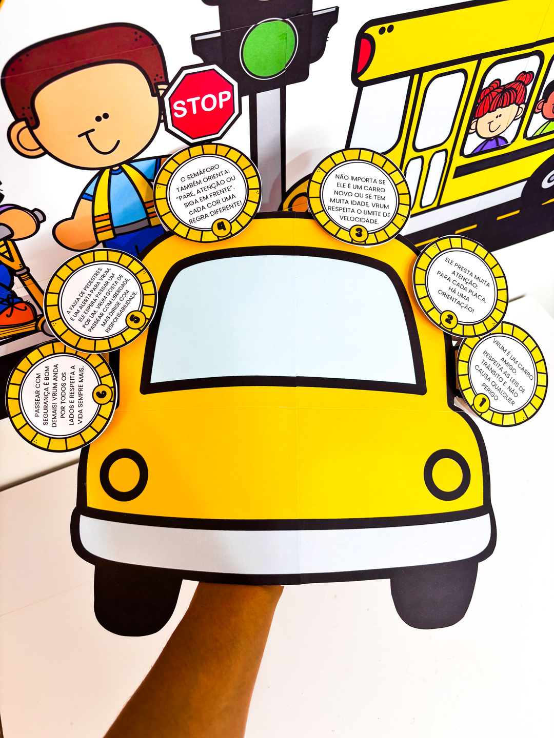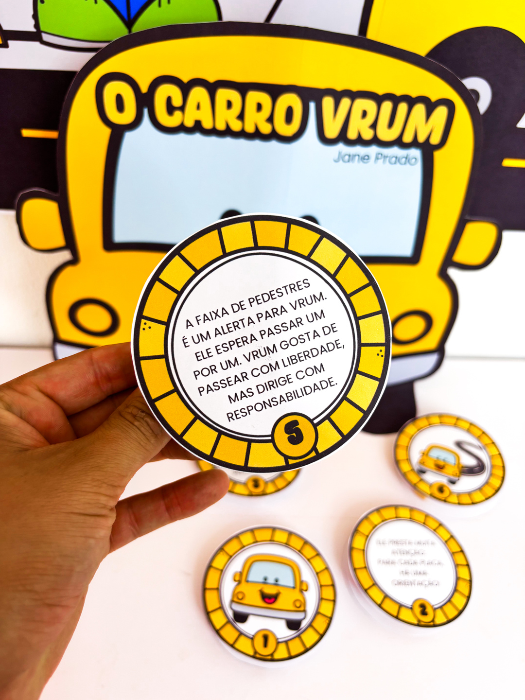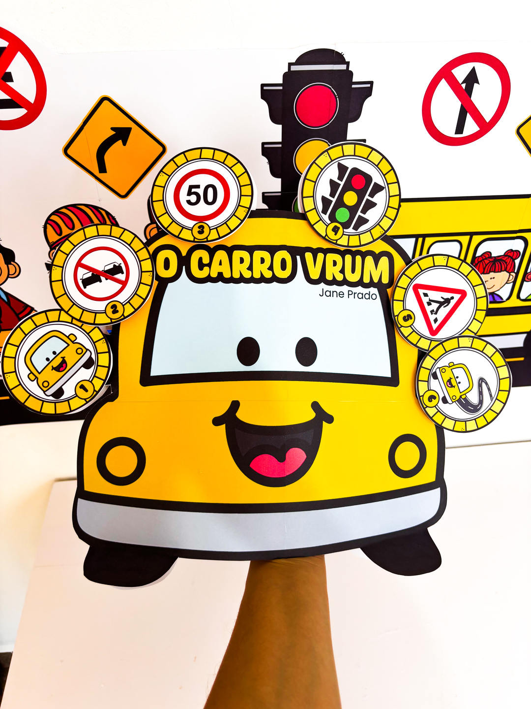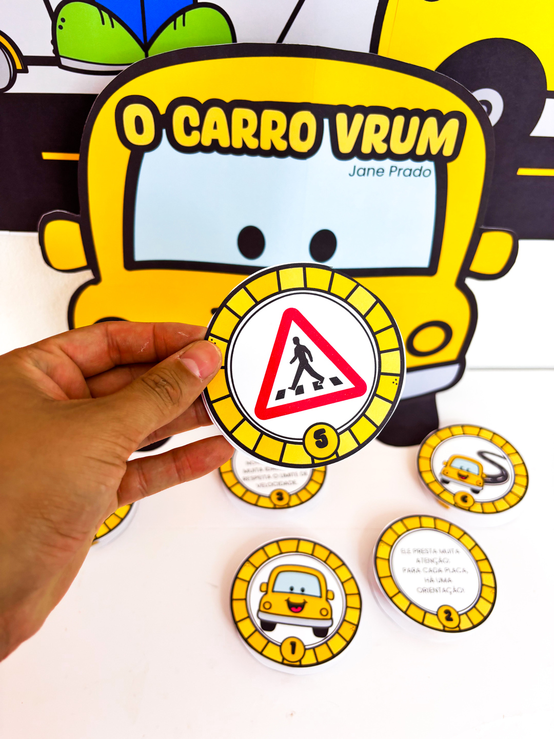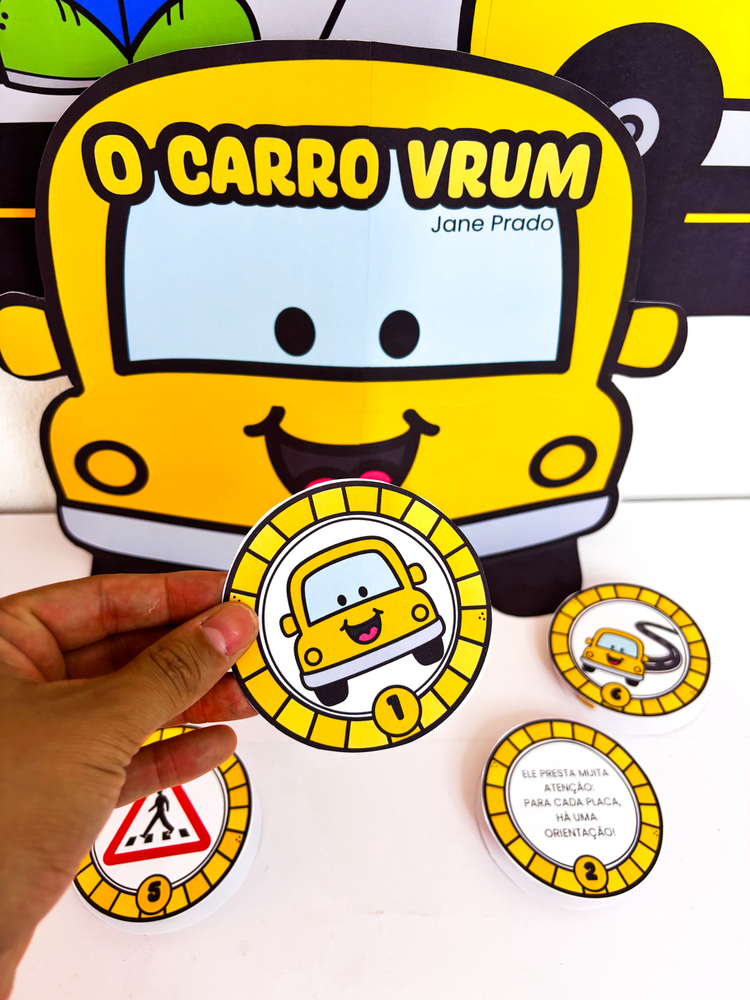 ✨ Luva de História – O Carro Vrum ✨ Chegou um recurso especial para deixar a Semana do Trânsito ainda mais divertida e educativa! A luva foi desenvolvida no formato de carro, inspirada na história “O Carro Vrum”, de Jane Prado, transformando o momento da contação em um espetáculo interativo. Sobre a história: “O Carro Vrum” apresenta, de forma lúdica, a importância de respeitar as regras de trânsito, trazendo situações do dia a dia que as crianças facilmente compreendem: o semáforo que organiza a passagem, a faixa de pedestres que garante segurança, o cuidado ao atravessar a rua e a convivência harmoniosa entre carros e pessoas. O que o material proporciona: - Estimula a imaginação e a atenção durante a contação; - Reforça os valores de cidadania e segurança no trânsito; - Traz uma experiência visual e prática com o formato criativo da luva em forma de carro; - Torna a aprendizagem mais próxima da realidade das crianças. Um recurso lúdico, cheio de significado, que une história, brincadeira e aprendizado na Semana do Trânsito.