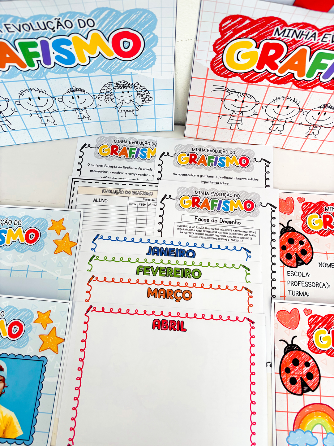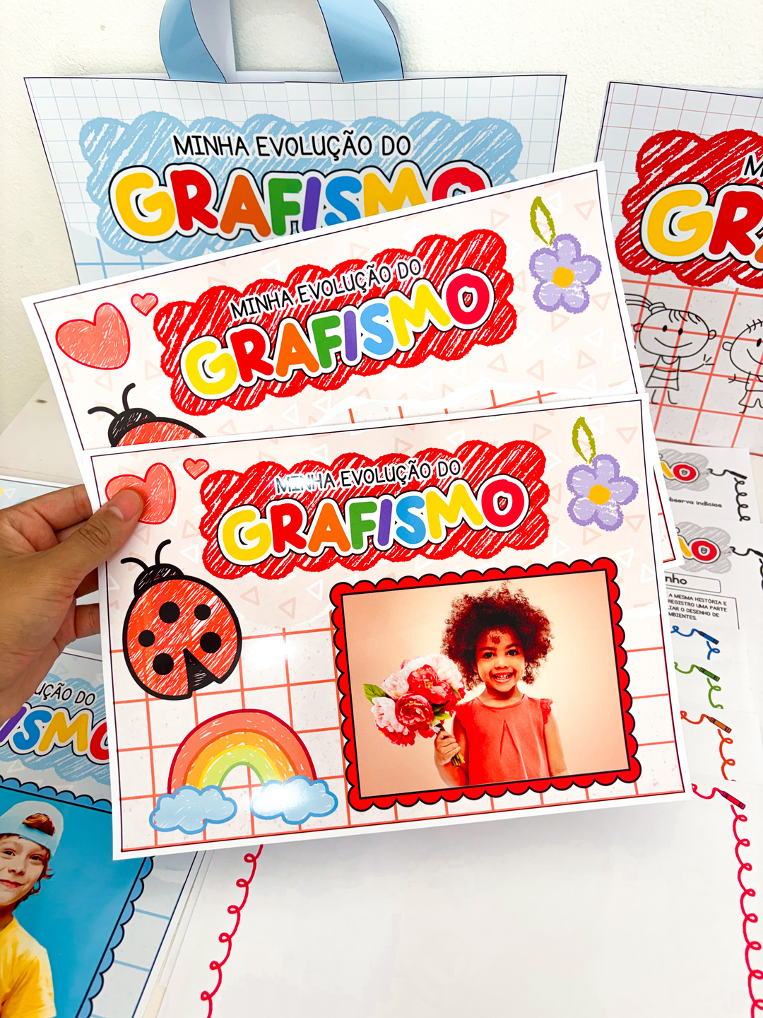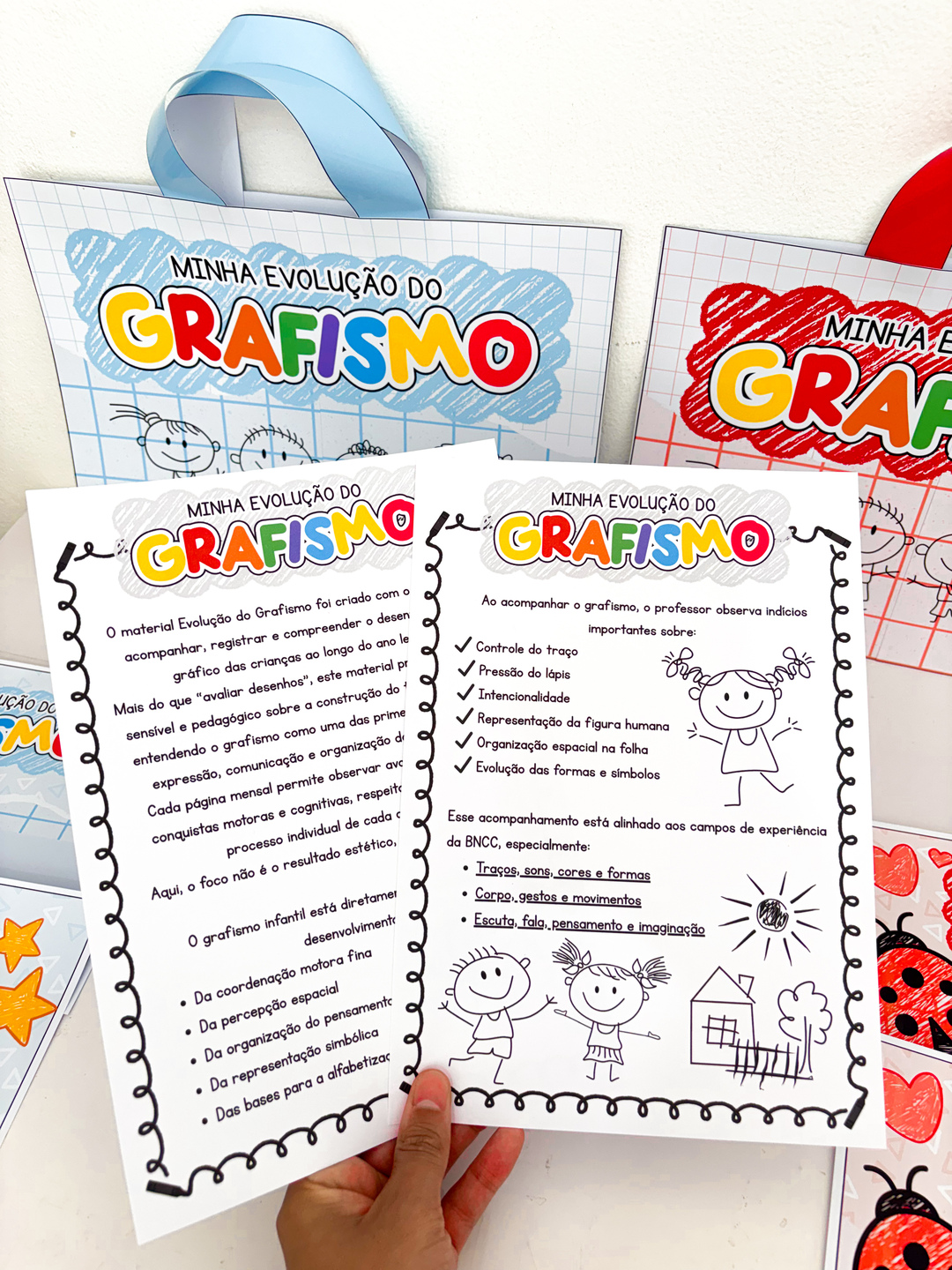 ✨📚 MINHA EVOLUÇÃO DO GRAFISMO Um material estratégico para quem entende que avaliar na Educação Infantil é observar processos — não apenas resultados. A sondagem do grafismo vai muito além de “pedir um desenho”. Ela revela hipóteses, maturidade motora, organização espacial, construção simbólica e avanços cognitivos da criança ao longo do tempo. E foi pensando nisso que nasceu o Minha Evolução do Grafismo. 🖍️ O que você encontra no material: ✔️ Duas opções de capa (menino e menina COM FOTOS EDITÁVEIS) — valorizando a identidade da criança e fortalecendo o vínculo com o próprio processo de aprendizagem. ✔️ Sacola personalizada — para organizar, arquivar e entregar às famílias de forma profissional e afetiva. ✔️ Páginas mensais estruturadas — para acompanhar a evolução do desenho durante todo o ano letivo. ✔️ Orientações claras para o professor — com comandos estratégicos que permitem observar aspectos motores, espaciais e simbólicos. ✔️ Objetivos alinhados à BNCC ✔️ Tabela de registro bimestral da turma — facilitando a análise coletiva e a documentação pedagógica. 💡 Esse não é apenas um caderno de desenhos. É um instrumento de observação intencional. É registro com propósito. É avaliação formativa na prática.