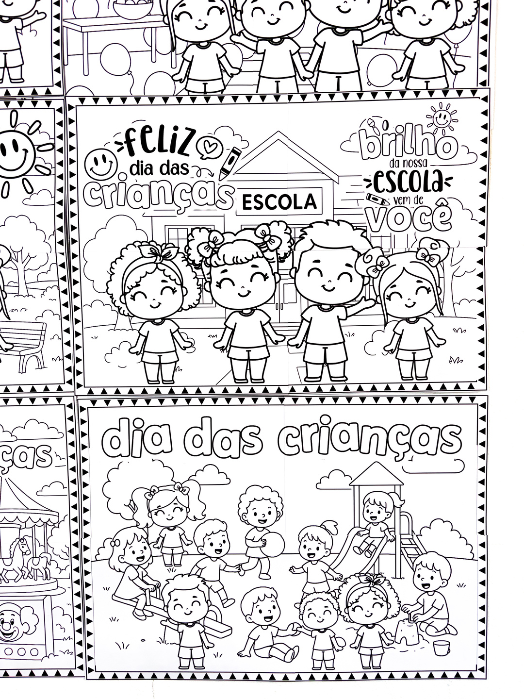🎉✨ Um kit para transformar a Semana da Criança em um momento inesquecível! Um material incrível: são 6 modelos de painéis temáticos, cada um ampliado em 9 folhas, formando cartazes gigantes para colorir. No total, 63 páginas prontinhas para envolver, divertir e encantar as crianças! 🖍️💖 💡 Benefícios da atividade: ✔ Estimula a criatividade e a coordenação motora. ✔ Incentiva o trabalho em equipe e a socialização. ✔ Cria memórias afetivas através da arte e do brincar. ✔ Garante uma decoração única, feita pelas próprias crianças. 👉 Dica: organize uma Oficina de Arte e Colorir durante a Semana da Criança. Cada turma pode participar da pintura de um painel, deixando o ambiente ainda mais colorido, colaborativo e cheio de significado. 🚀 Garanta já o seu kit e faça parte dessa experiência que vai unir diversão, aprendizagem e afeto!