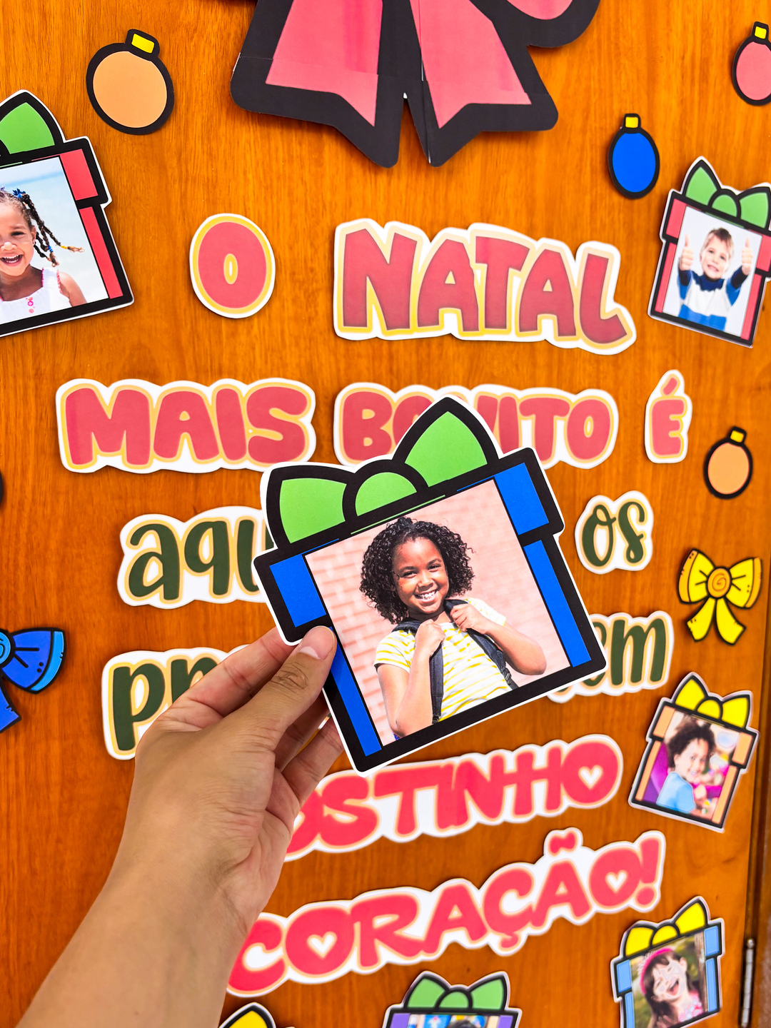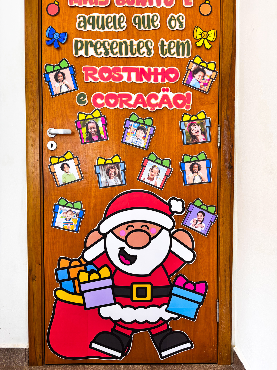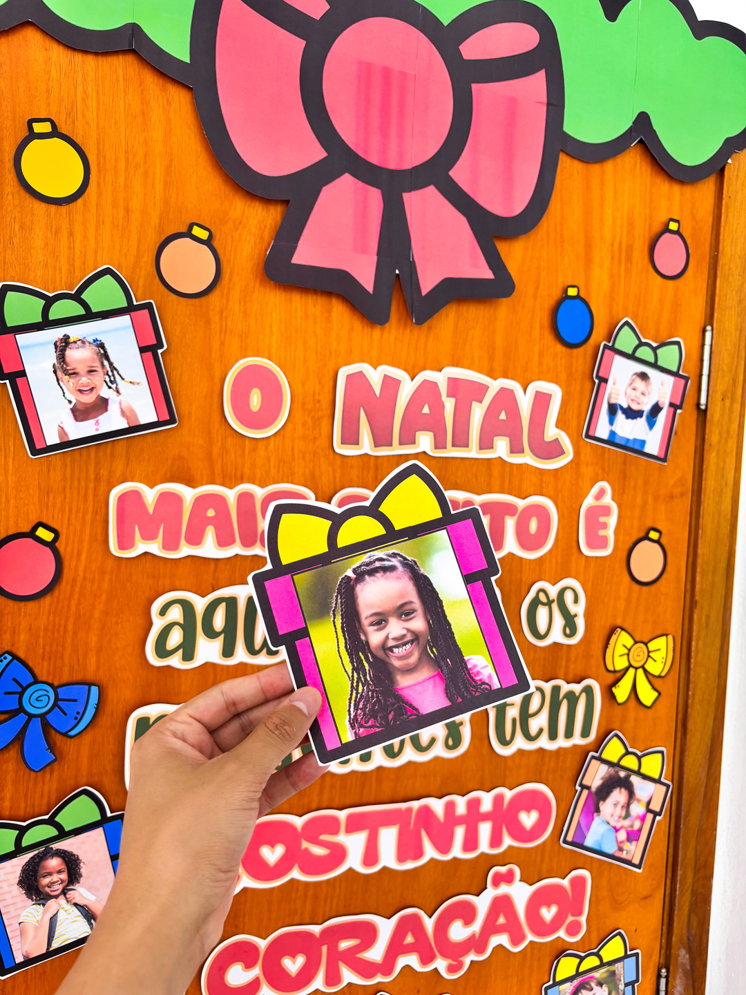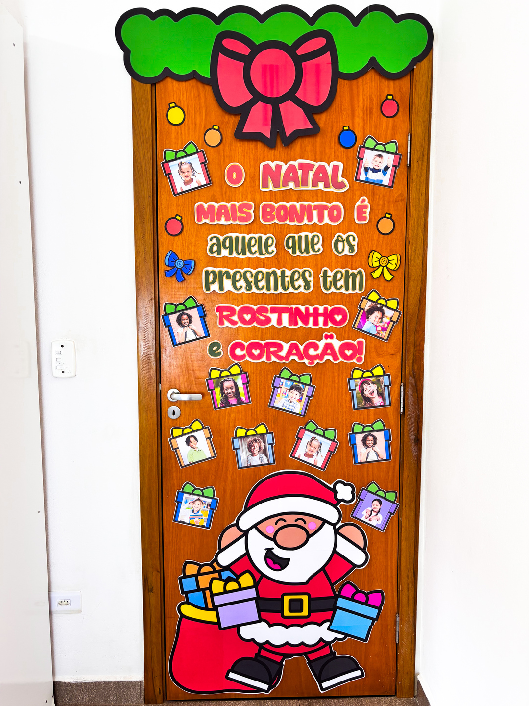 Deixe a entrada da sua sala transbordar encanto com o painel de porta Presentes de Natal! Um material pensado para transformar sua porta em um cenário afetivo, alegre e cheio da magia que as famílias amam ver. Com a frase “O Natal mais bonito é aquele que os presentes têm rostinho e coração”, cada presente ganha a foto da sua criança — um detalhe simples, mas que faz toda a diferença no coração dos pequenos. O painel ainda traz um Papai Noel feliz e acolhedor, além de elementos natalinos que deixam qualquer ambiente mais vivo, colorido e cheio de boas lembranças. É aquele tipo de decoração que recebe, encanta e emociona logo no primeiro olhar. Garanta agora o seu painel Presentes de Natal e leve mais magia para a entrada da sua sala!