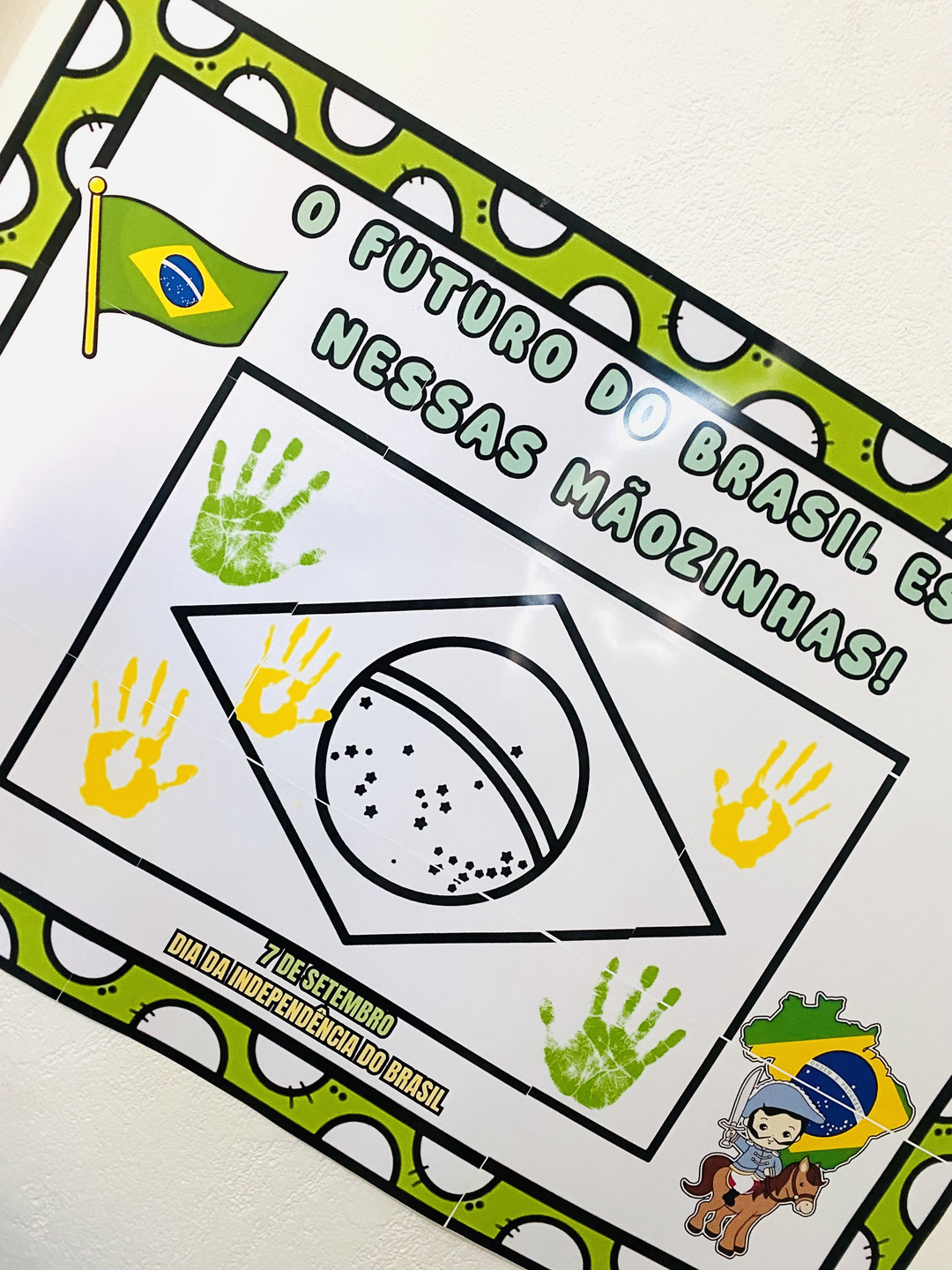 Celebre a independência do Brasil com um painel onde as crianças podem deixar suas impressões com as mãozinhas de tinta!