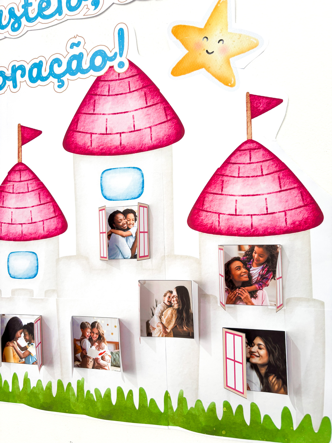Cada janelinha carrega um pedacinho de amor, com as fotos das mães da sua turma, transformando tudo em uma homenagem viva, afetiva e inesquecível.