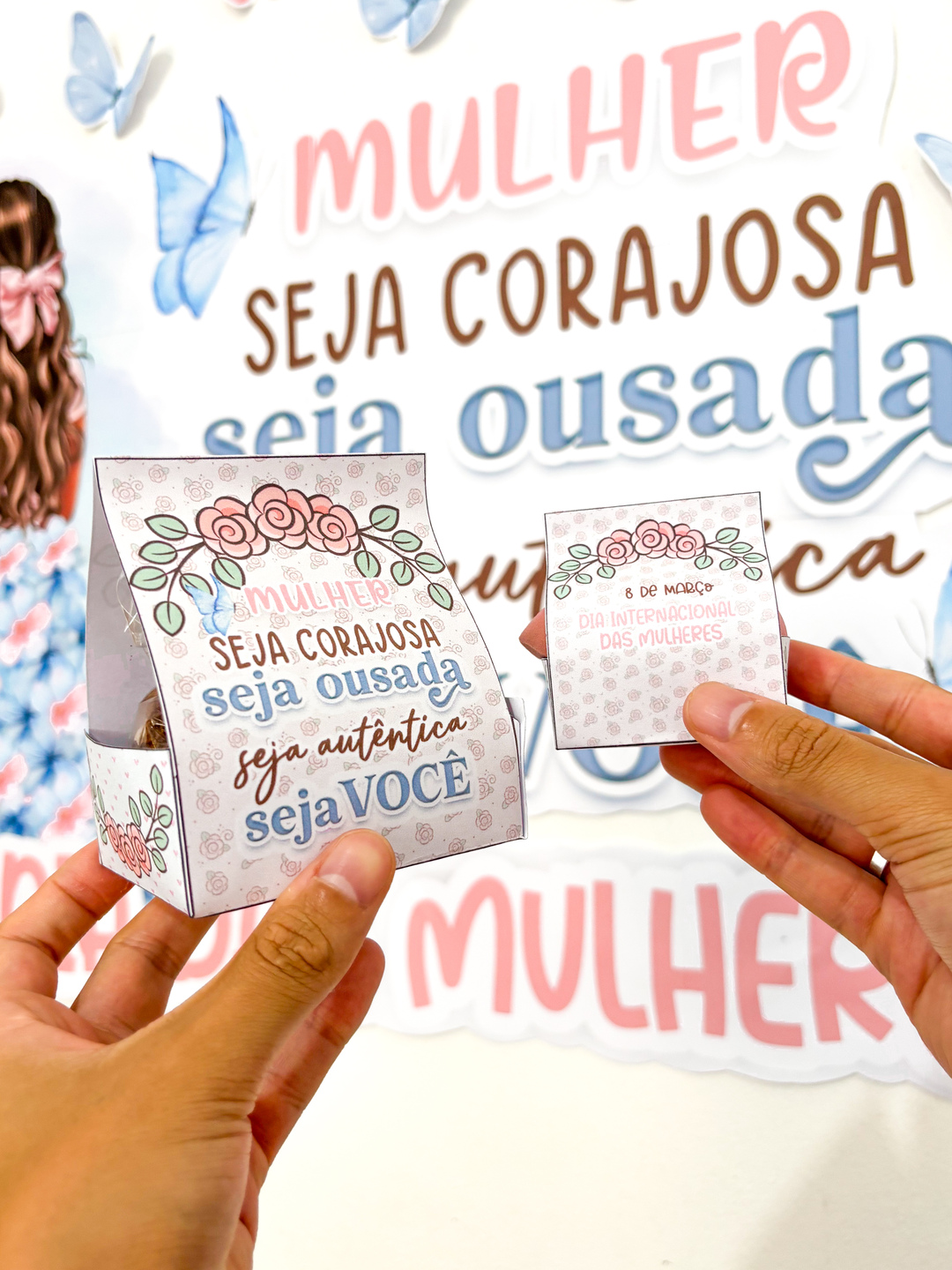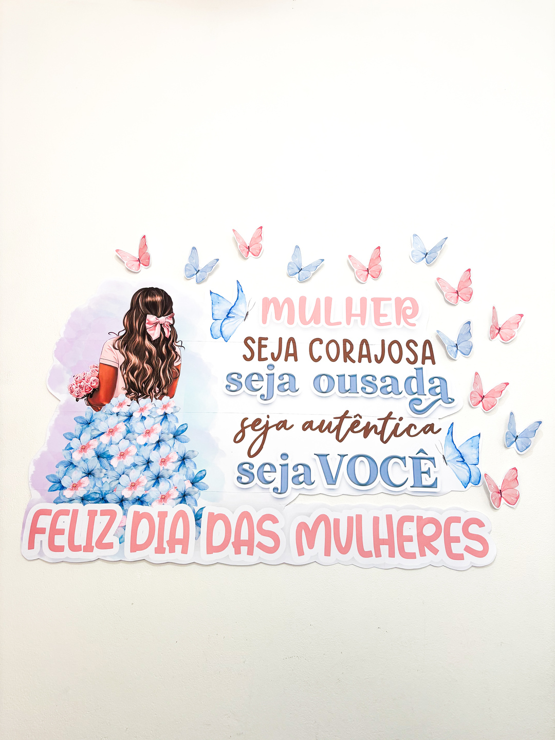 NÃO É SOBRE DECORAR A ESCOLA. É SOBRE MARCAR VIDAS. Este painel não foi criado apenas para comemorar o Dia Internacional da Mulher. Ele foi pensado para lembrar cada mulher da sua escola quem ela é…mesmo nos dias em que ela esquece. A professora que chega cansada, mas ensina com amor. A funcionária que organiza tudo nos bastidores. A mãe que confia, acompanha e acredita. Cada uma delas é força. É transformação. É inspiração diária. As borboletas em 3D representam exatamente isso: processos, mudanças, crescimento… porque nenhuma mulher permanece a mesma depois de tudo o que enfrenta e supera. E a mensagem no painel não é apenas uma frase bonita. É um lembrete permanente na parede da sua escola: ✨ Seja corajosa. ✨ Seja ousada. ✨ Seja autêntica. ✨ Seja você. Além do painel, acompanham duas caixinhas para mimo Um gesto simples, mas carregado de intenção — porque mulheres não precisam apenas ser lembradas…precisam ser valorizadas. MEDIDAS APROX.: 1,34 x 0,95 m