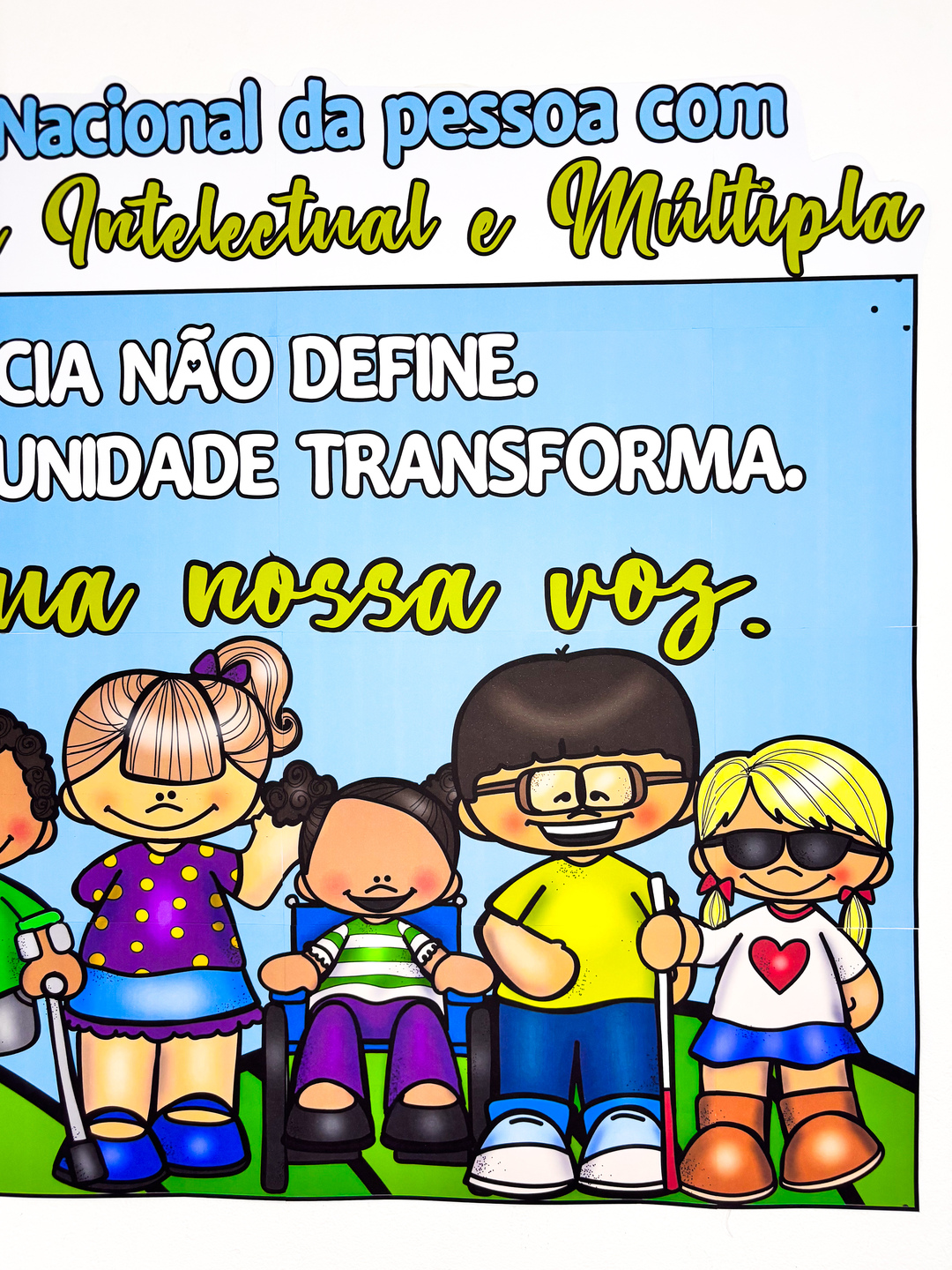 Pensando nisso, desenvolvemos um painel temático completo, pronto para imprimir, que vai além da estética: ele desperta reflexão, promove empatia e reforça o compromisso com a inclusão verdadeira.