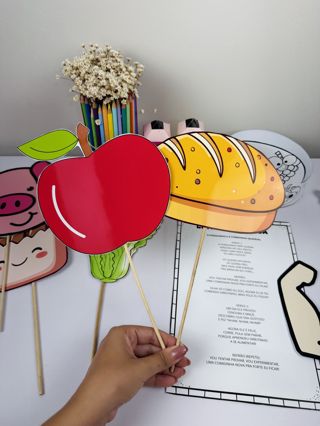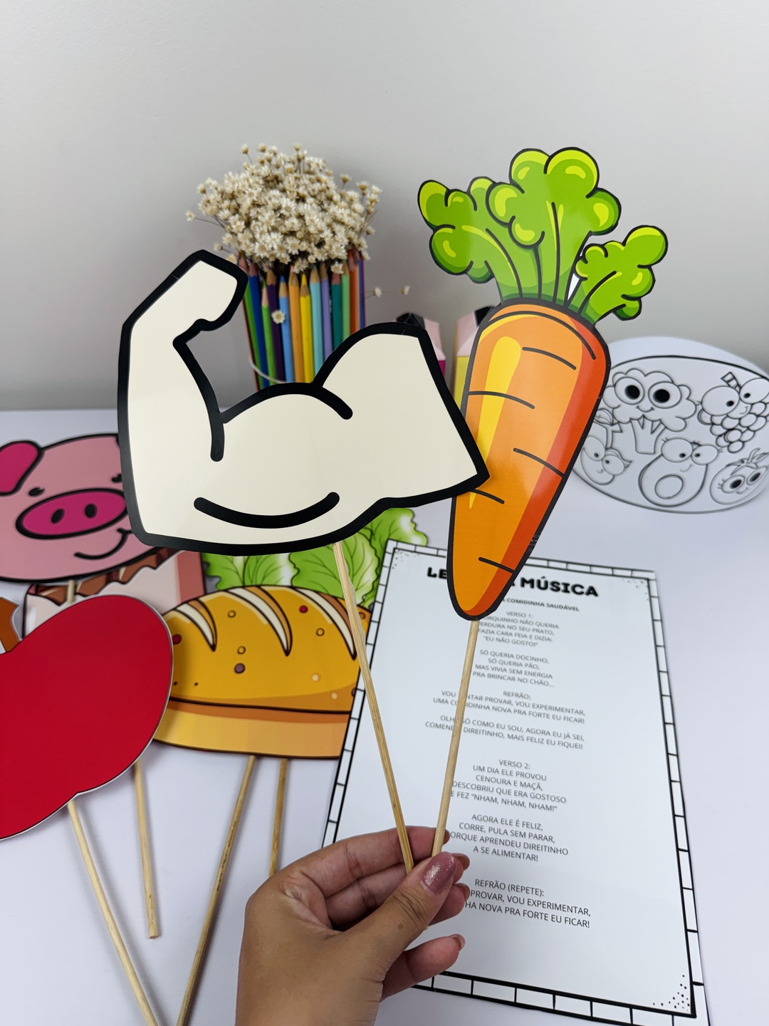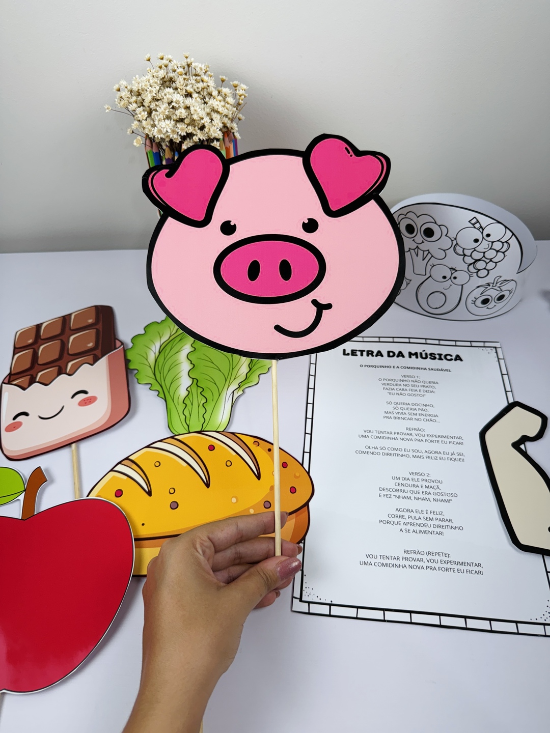 Um material lúdico e encantador para trabalhar hábitos alimentares com as crianças de forma divertida! 🥦🍎 📦 O que você vai receber: ✔️ Figuras ilustradas para contação de história ✔️ Coroa temática para as crianças ✔️ Letra da música prontinha para impressão 🎯 Ideal para: Educação infantil, projetos sobre alimentação saudável, rodas de conversa e momentos musicais 🎶 💡 Um recurso perfeito para deixar sua aula mais dinâmica, interativa e significativa!