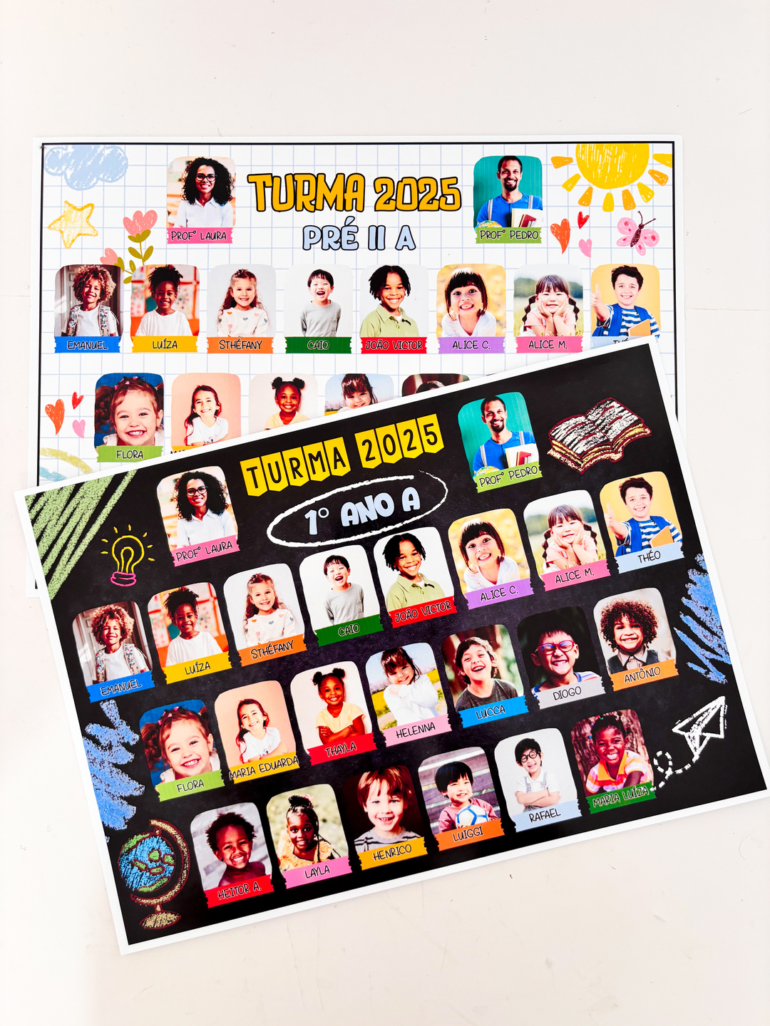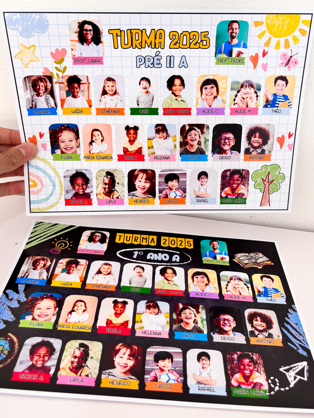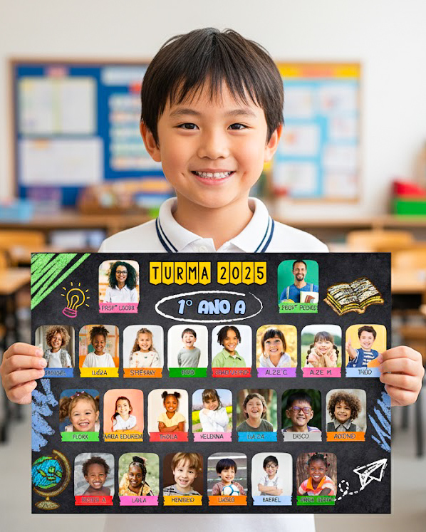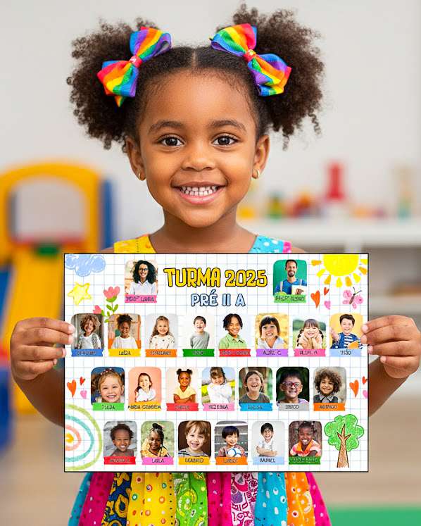 Apresente um presente que vai marcar o coração das famílias: o Quadro da Turma, uma lembrança linda para fechar o ano com significado e emoção. São dois modelos exclusivos: ✨ Um layout elegante para o Ensino Fundamental, perfeito para registrar a trajetória da turma. ✨ E um modelo super colorido, fofíssimo e cheio de infância para o Educação Infantil, do jeitinho que as famílias amam! O melhor? Você edita tudo! Fotos, nomes, textos — tudo pode ser personalizado para representar a sua turma com autenticidade. E para facilitar ainda mais, o material acompanha tutorial de edição, passo a passo, para você criar sua versão sem complicações. Finalize o ano entregando algo que as famílias vão guardar com carinho, moldurar e lembrar sempre: o retrato de um ano inteiro de aprendizado, sorrisos e histórias que só vocês viveram juntos.