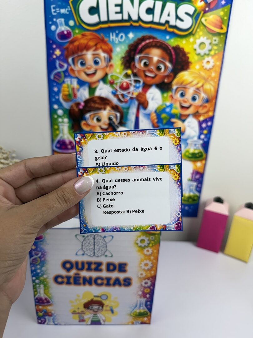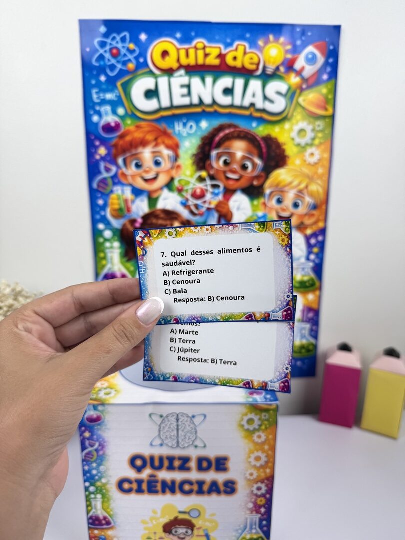 QUIZ DE CIÊNCIAS – APRENDA BRINCANDO! 🔬🌎 Um material perfeito para tornar o aprendizado de ciências mais divertido e interativo! 💡 📦 O que você vai receber: ✔️ Cartaz temático “Quiz de Ciências” ✔️ Caixa organizadora para as perguntas ✔️ 30 perguntas prontas para crianças de 8 a 10 anos ✔️ Atividade lúdica e educativa para sala de aula ou reforço 🎯 Ideal para trabalhar: 🧠 Raciocínio lógico 🌱 Conhecimentos científicos básicos 👩🏫 Participação e interação dos alunos 📲 Material em PDF pronto para imprimir e usar!