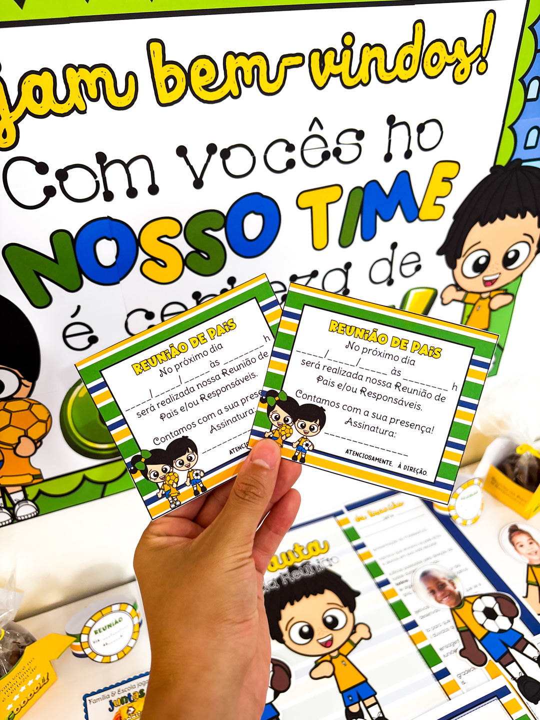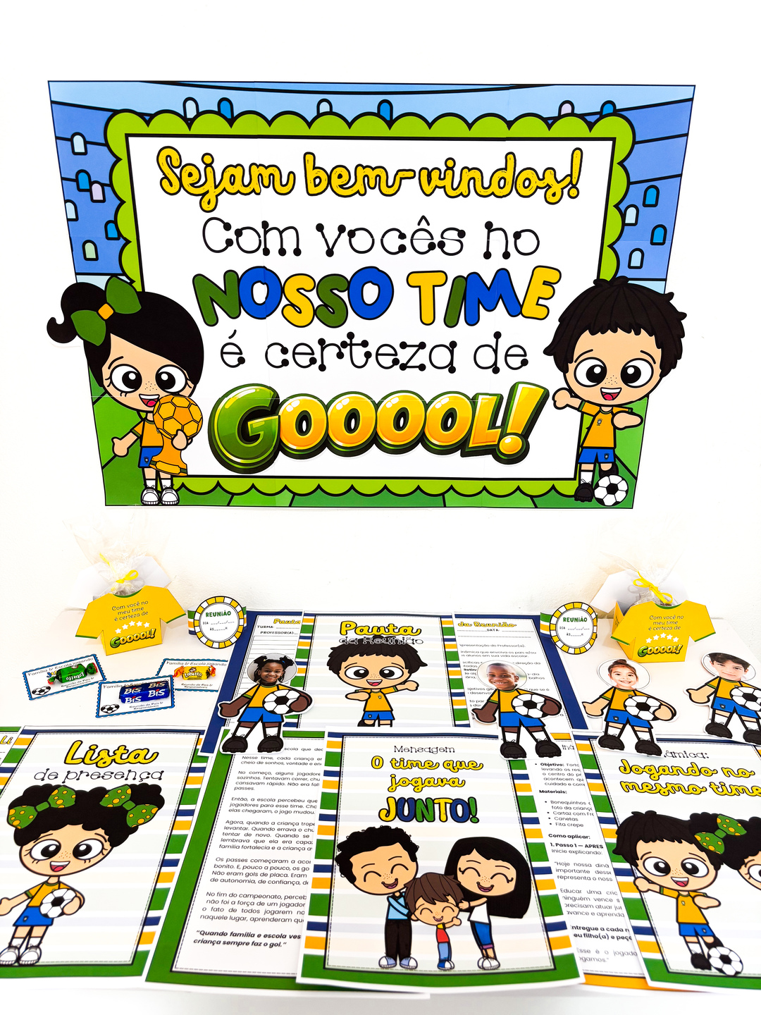 O Kit Reunião de Pais – Tema Futebol | Jogando no Mesmo Time foi criado para transformar esse momento tão importante em uma experiência significativa, organizada e emocionante, fortalecendo a parceria entre escola e família e colocando a criança no centro de tudo.